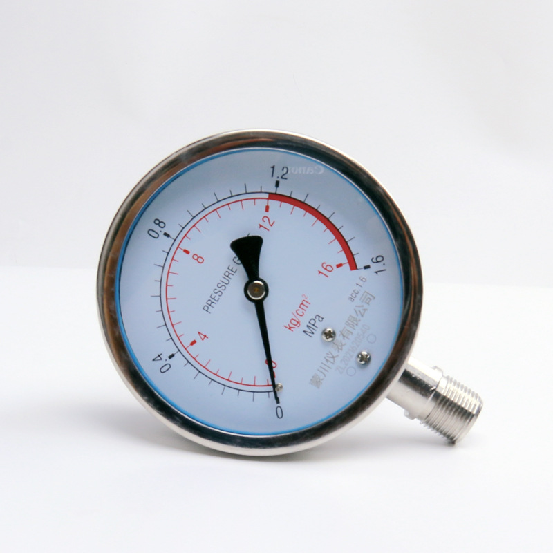 Mengchuan Instrument Y100BF Stainless Steel Pressure Gauge (0-1.6 MPa, M20x1.5, Radial/Axial Connection) for HVAC Boiler Water Oil Vacuum