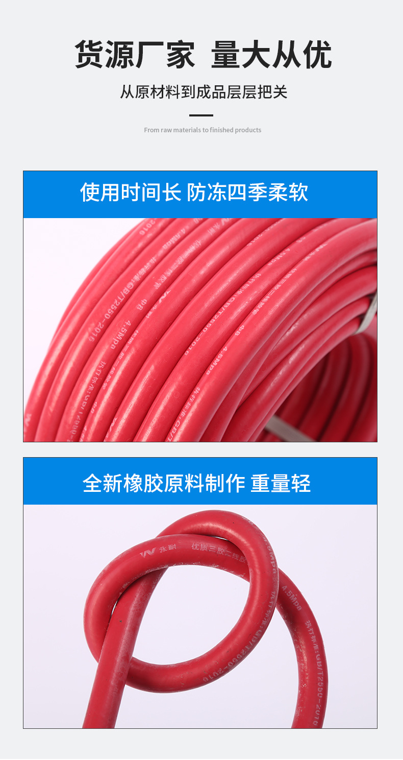 YUELPAI 3단 2선식 고압 고무 호스, 산업용 산소 아세틸렌 용접용 에어 도구 호스