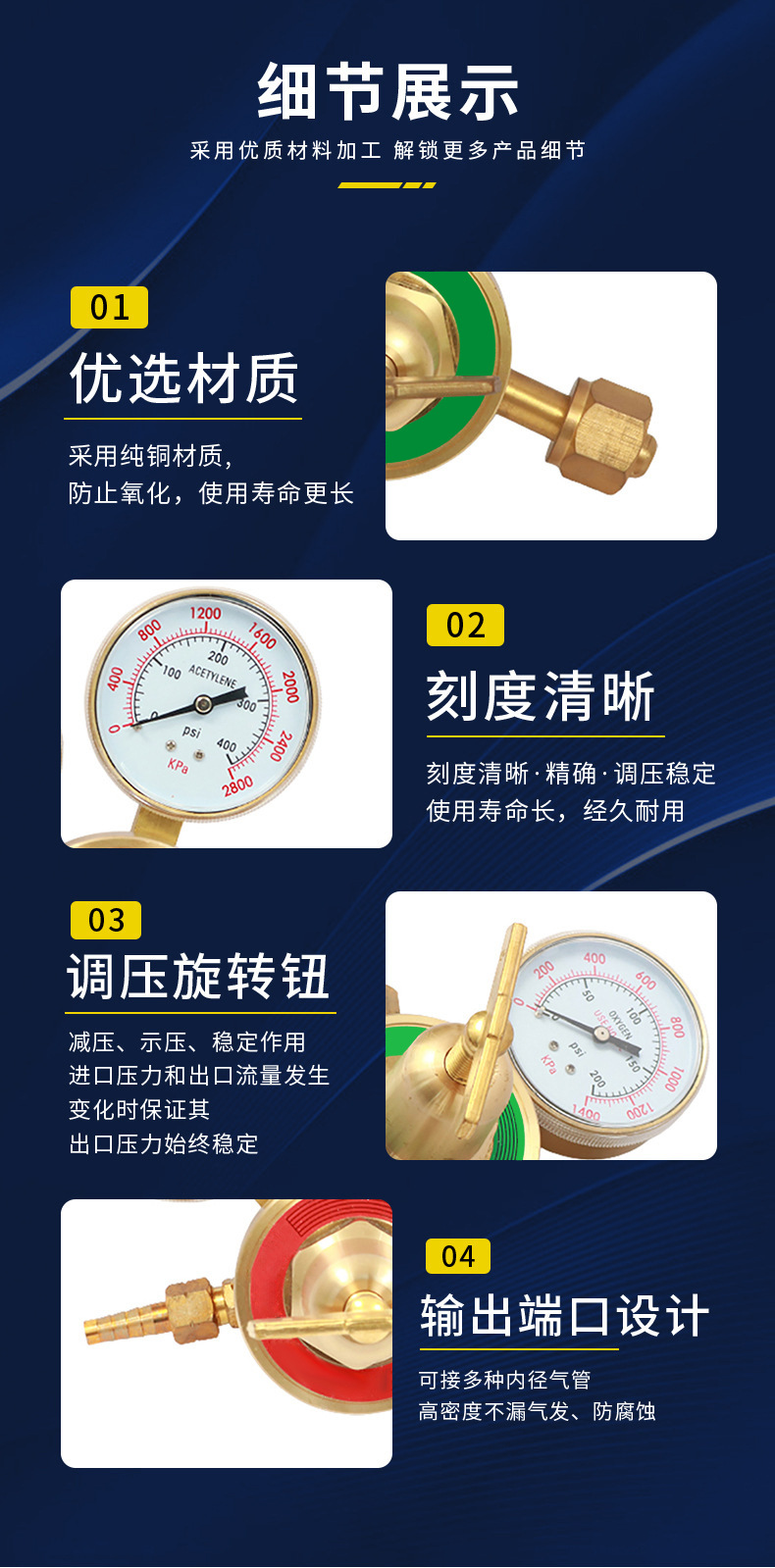- Stable Pressure Regulation: Provides stable output pressure and flow with a rated outlet pressure of 1.2 MPa and a flow rate of 0-25L/min, essential for precise gas control.
