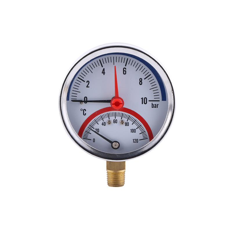 Radial Thermopressure Gauge 80mm Iron Case with Copper Joint (0-10bar, 0-120°C) for HVAC Systems
