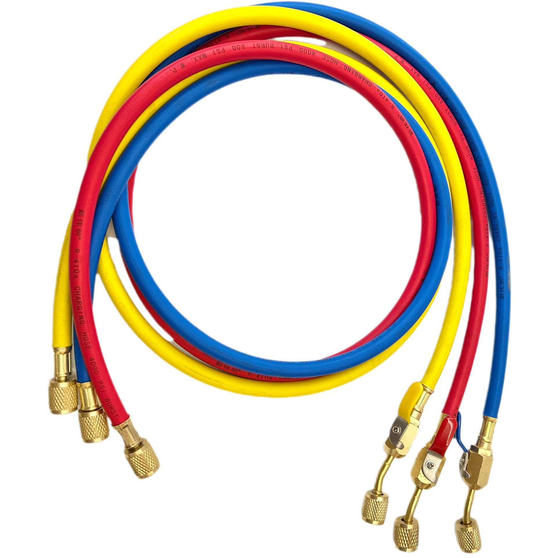 Kit Hos Pengecasan Penyejuk HVAC (R-410a, R-134a, R-22) Tekanan Kerja 800PSI, Tekanan Pecah 4000PSI, Panjang 36 inci/60 inci/72 inci dengan Injap Bebola untuk Tolok Manifold AC