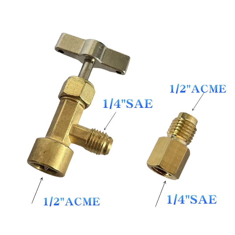 - Keserasian Luas: Direka khusus untuk aplikasi penyejuk R134a, menampilkan benang ACME 1/2″ untuk ketuk tin dan termasuk penyesuai SAE 1/2″ ACME kepada 1/4″ serba boleh untuk kegunaan meluas dalam sistem AC automotif.