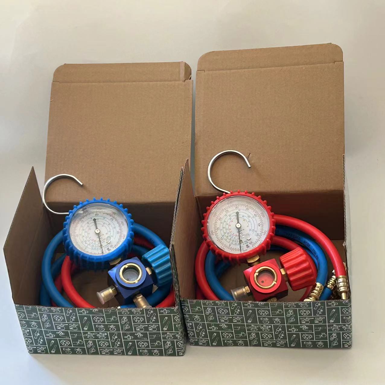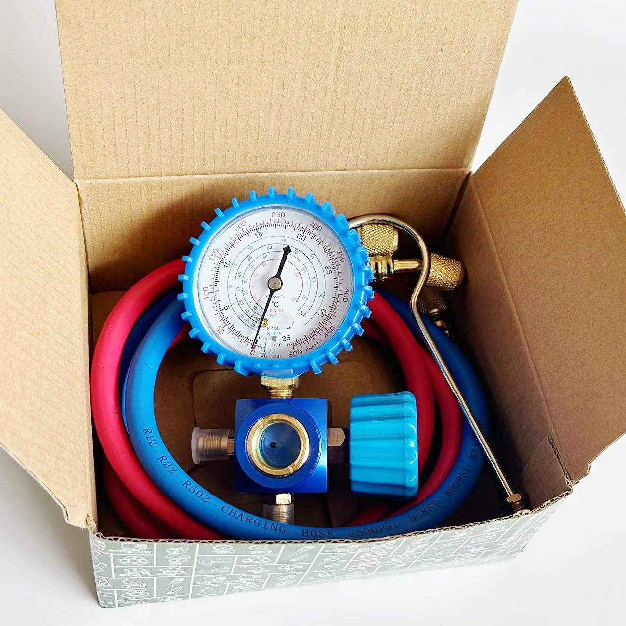 Refrigerant Manifold Gauge Set (R22/R134a/R12/R404a) with Brass Valve Body and Hoses for AC/Automotive Maintenance
