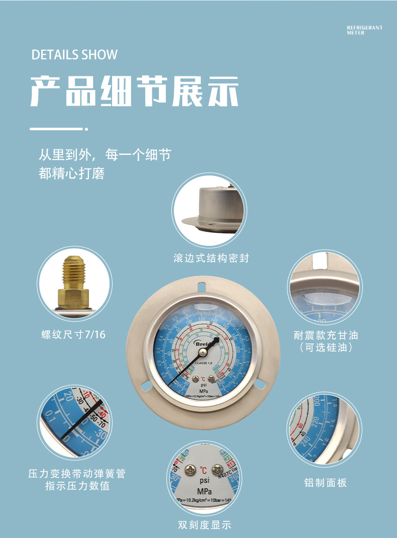 Refrigerant Pressure Gauge High Precision Manifold Gauge for HVAC AC Systems with R404A R22 R134a R407C psi MPa Readings