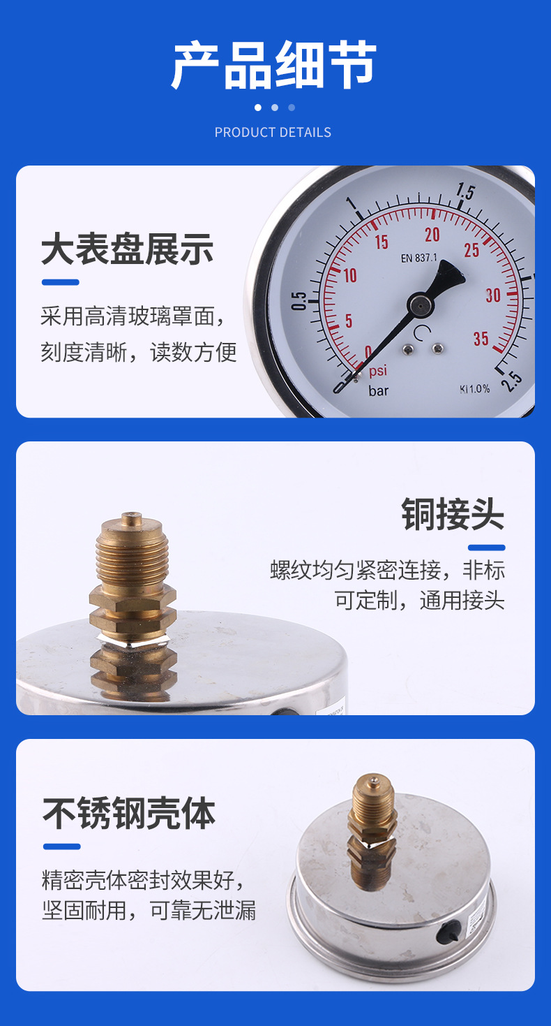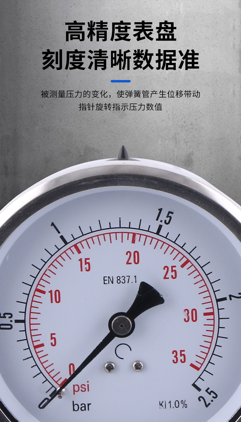 - Enhanced Stability: This oil-filled pressure gauge offers excellent vibration resistance, providing stable and accurate readings even in demanding industrial environments.