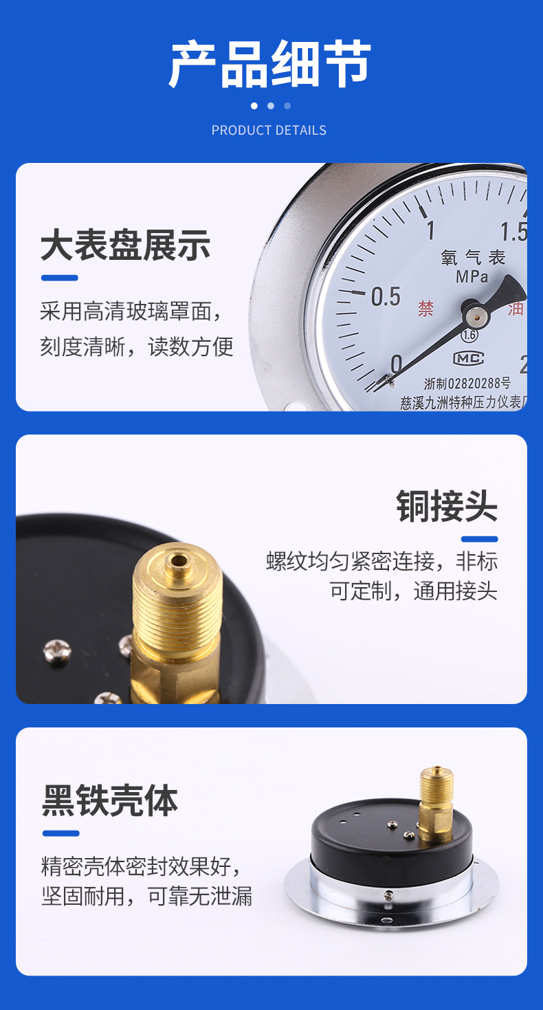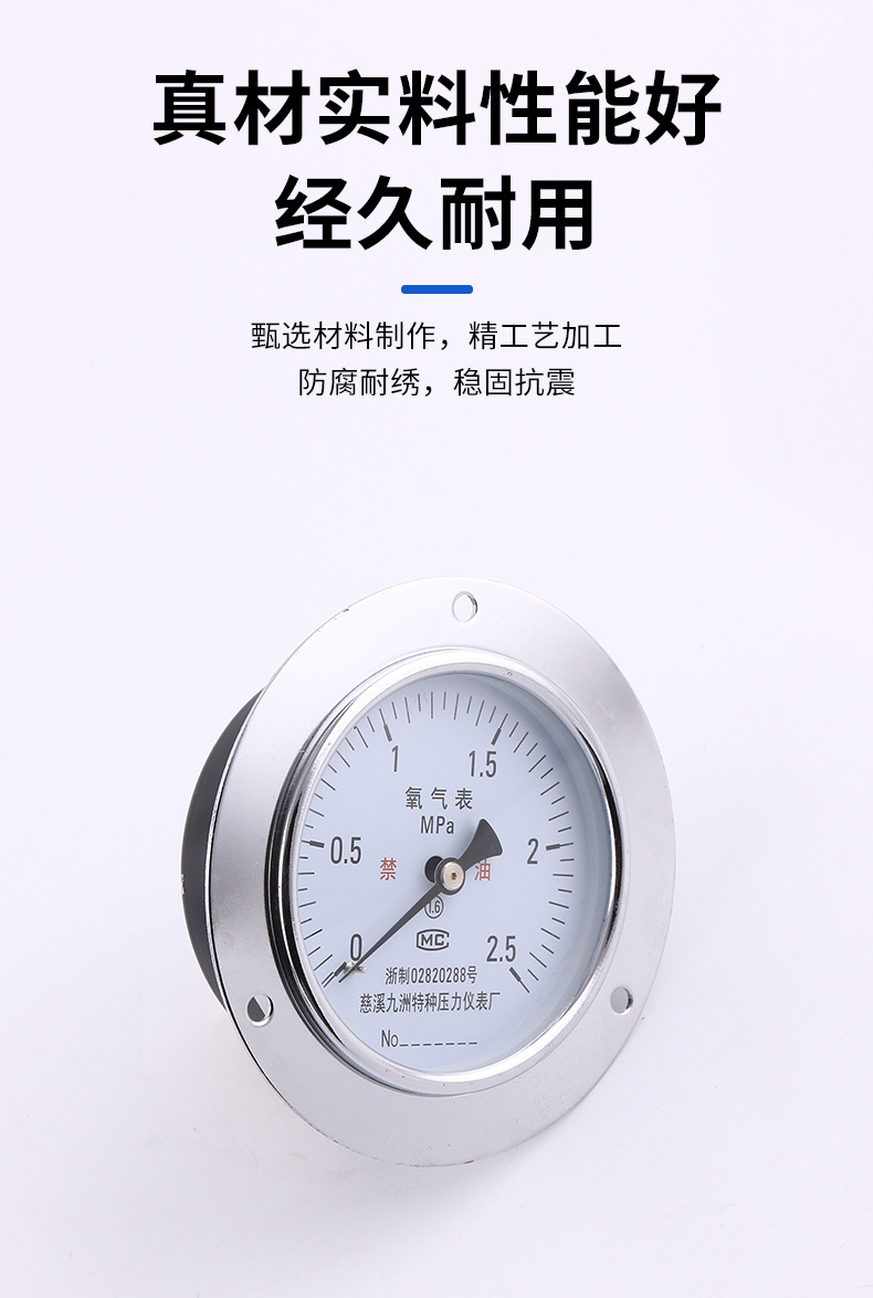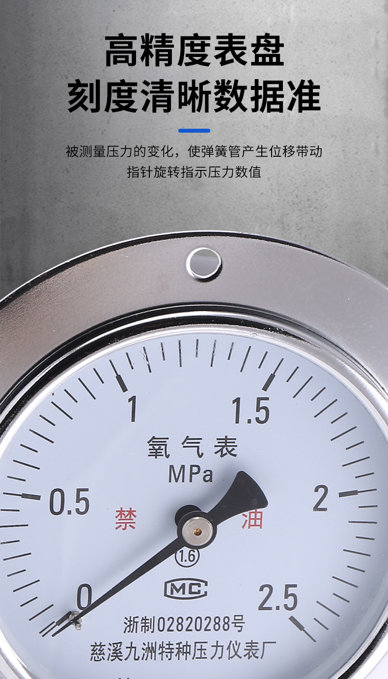 100mm Axial Oxygen Pressure Gauge (0-2.5 MPa, 1.6% Accuracy) for HVAC Systems