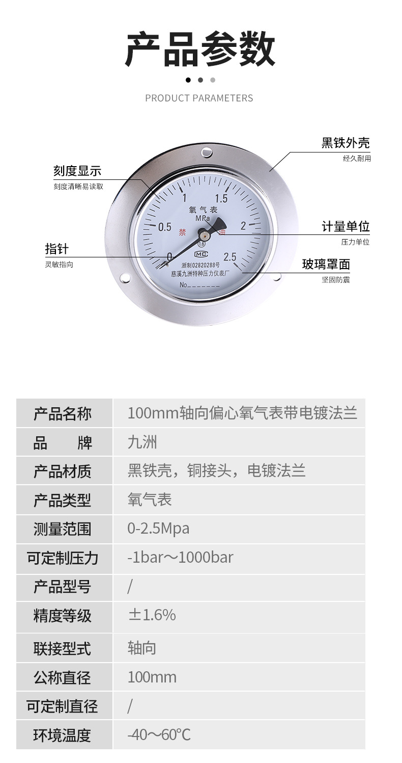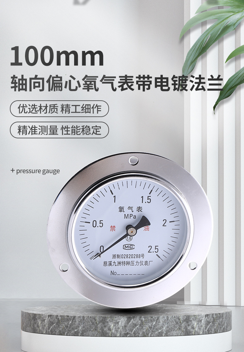 - What You Get: One 100mm Axial Oxygen Pressure Gauge with eccentric design and electroplated flange. Ensure proper fit before purchase.