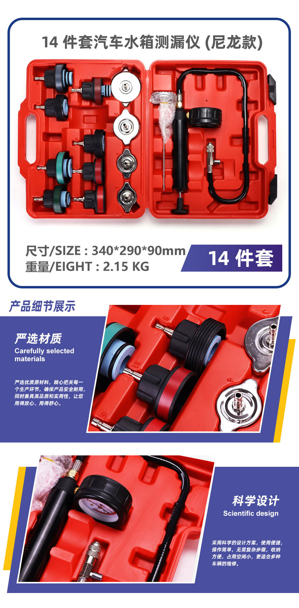 - Wide Compatibility: Features a 14-piece adapter set, making it compatible with a broad range of vehicle cooling systems for comprehensive leak detection and pressure testing.