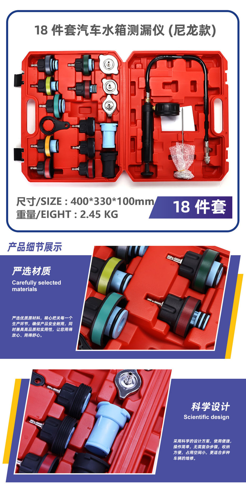18PC Automotive Radiator Pressure Tester Kit with Hand Pump Gauge for Cooling System Leak Detection
