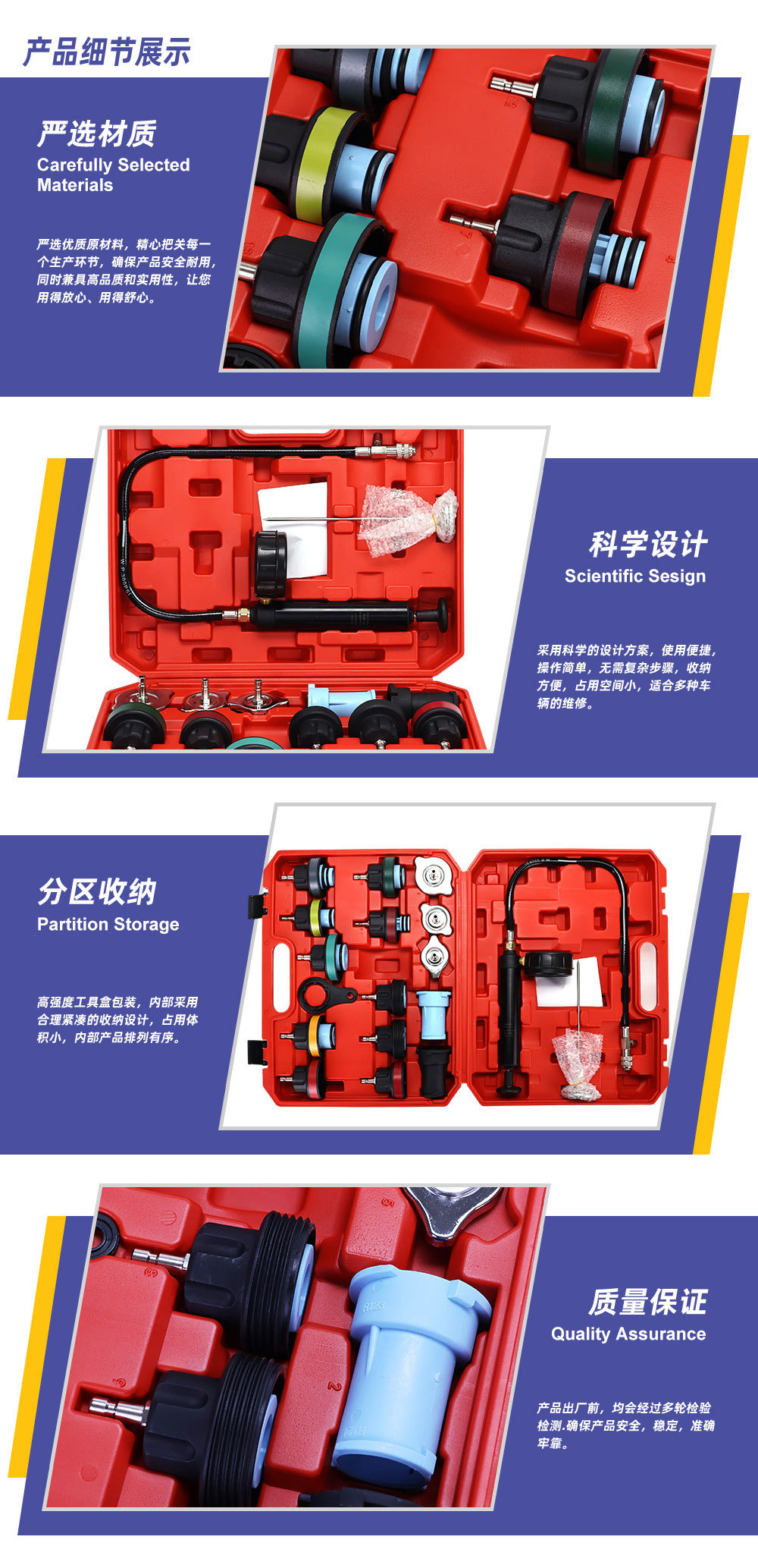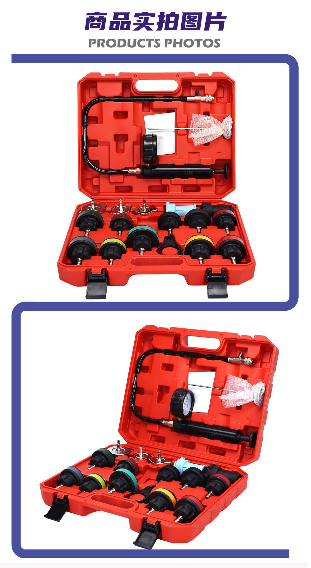- Wide Compatibility: This 18-piece radiator pressure tester kit is designed for multi-vehicle types, providing comprehensive compatibility for various automotive cooling systems.