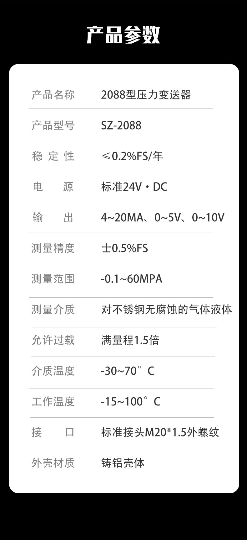 - Compatibility: Universal pressure transmitter for air and water pressure systems with 2088 model type, ensuring broad applicability.
