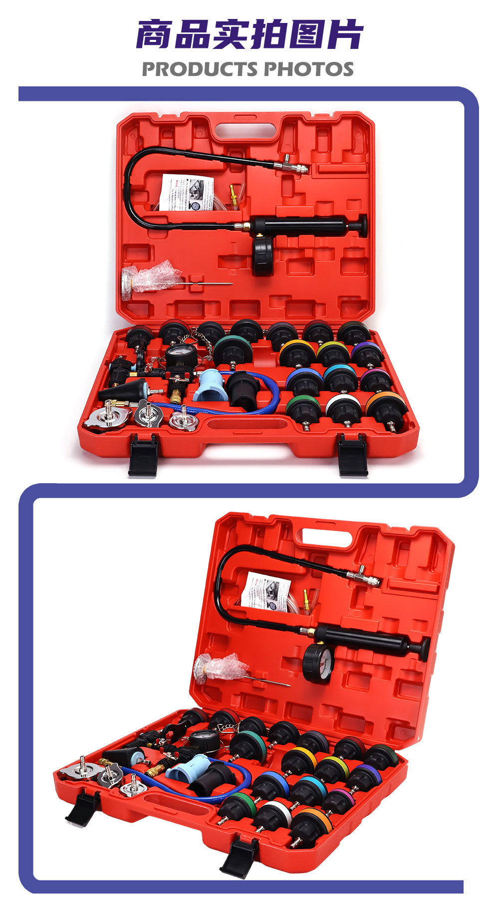 - Wide Compatibility: This professional 28-piece radiator pressure tester kit is designed for a vast array of vehicle models, offering broad applicability for comprehensive leak detection and diagnostic tasks across different car brands.
