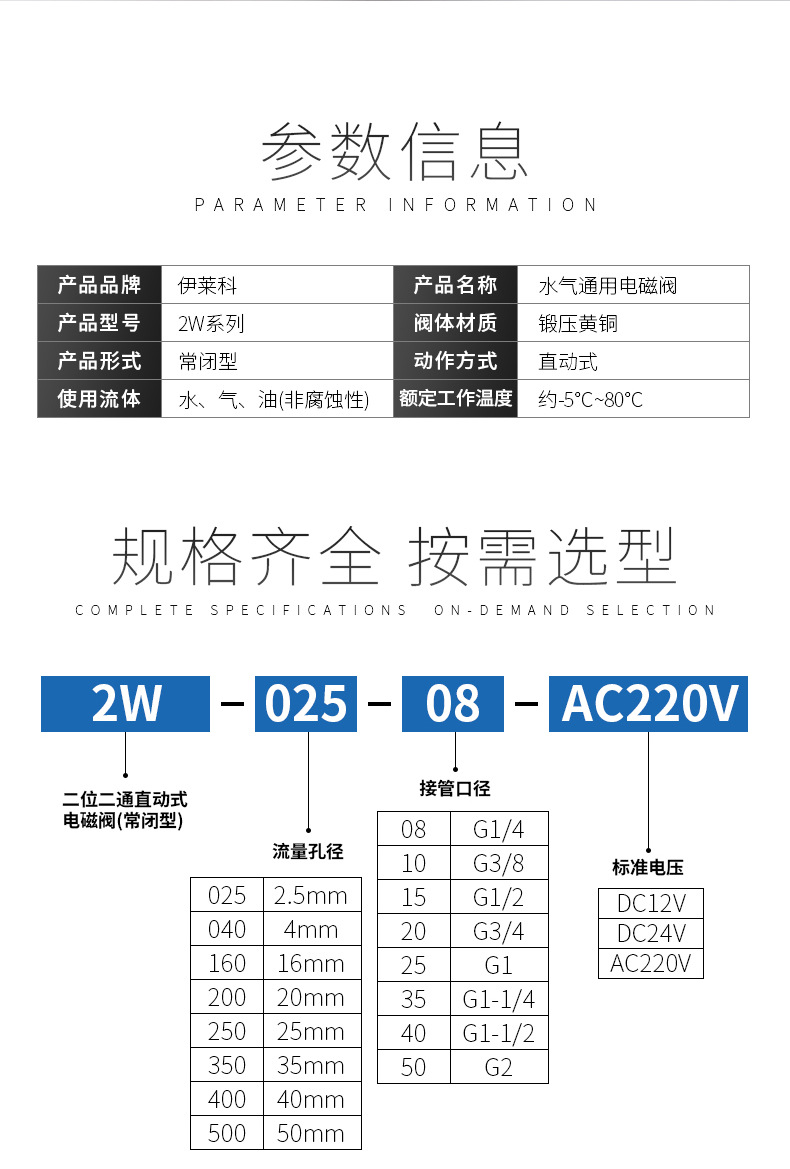 - Wide Compatibility: Versatile 2W series solenoid valve suitable for water, oil, and air media, ideal for various HVAC applications and fluid control systems, ensuring broad utility across different setups.
