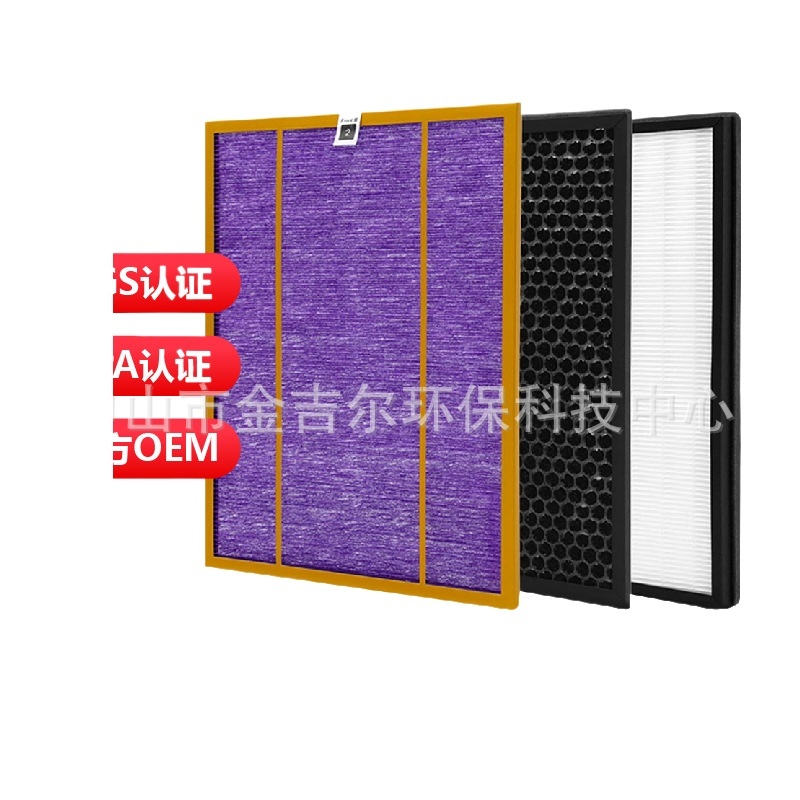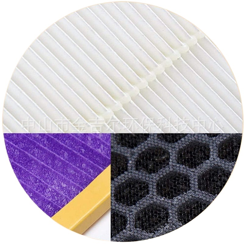 - Quality Filtration: Features a multi-layer woven design, including a HEPA filter (purple layer in image), an activated carbon filter (black honeycomb layer), and a pre-filter (white layer), for superior air purification.