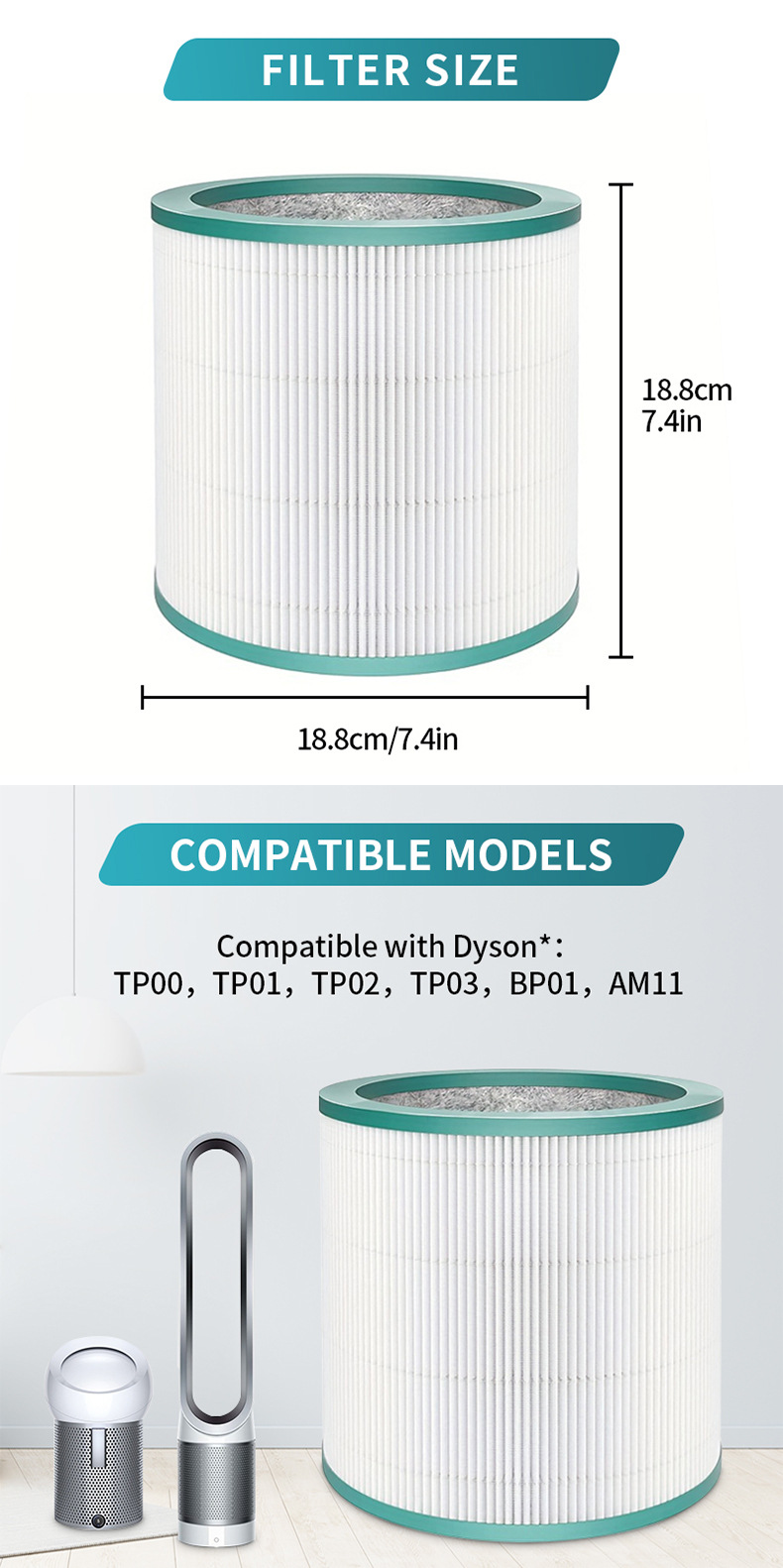 - Wide Compatibility: Designed specifically for Dyson TP01, TP02, and TP03 air purifier models, ensuring a perfect fit and seamless operation for your device. Replaces part “适配戴森02”.