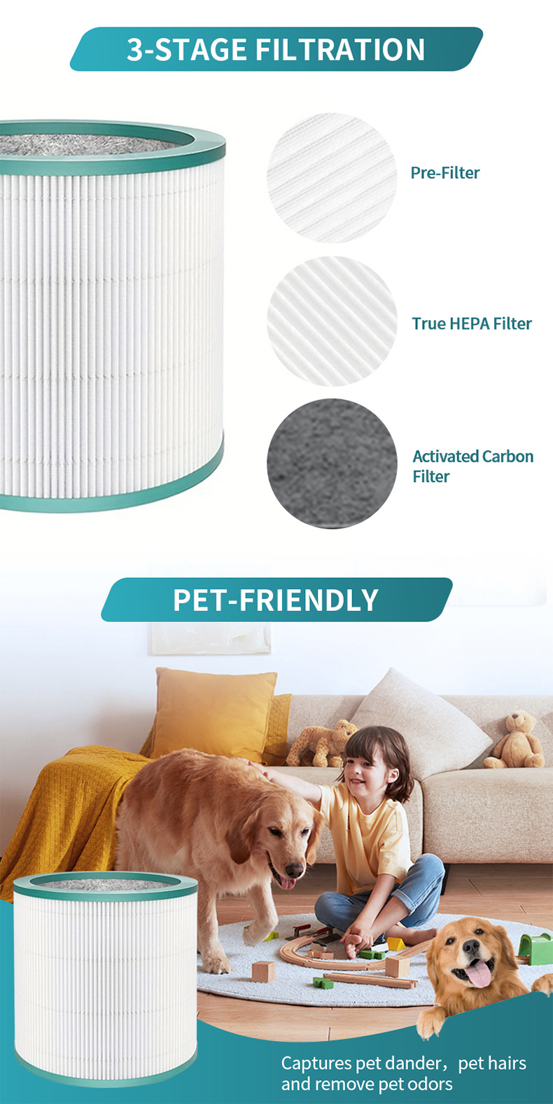 - Enhanced Air Quality: This 3-in-1 high-efficiency filter rigorously tested for qualified performance, removes ultrafine particles, allergens, and odors, significantly improving indoor air quality.