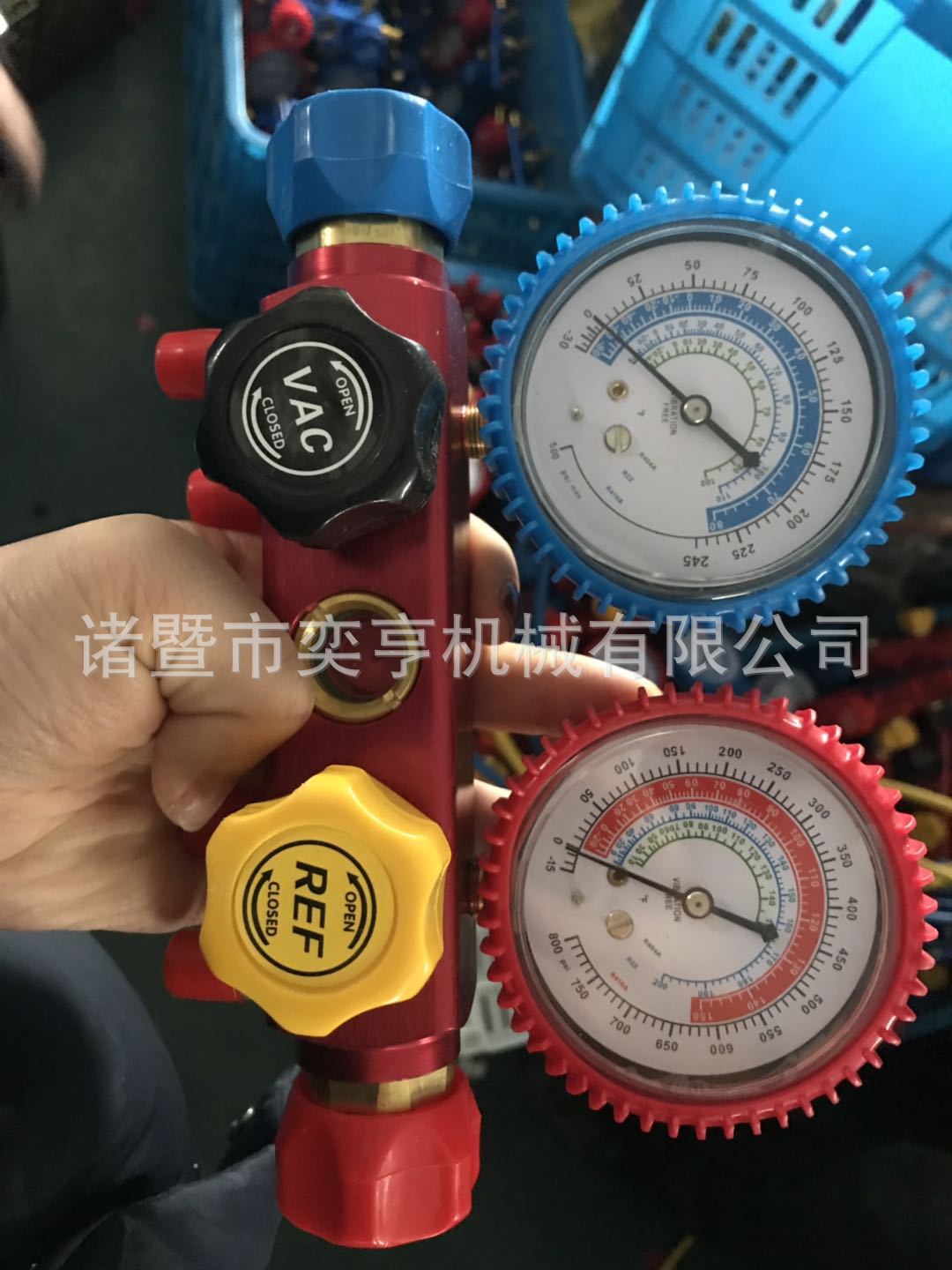 - Core Specs & Performance: Features dual pressure gauges for accurate readings, clearly labeled for vacuum and pressure, providing precise control for charging, evacuation, and diagnostic tasks in refrigeration systems.