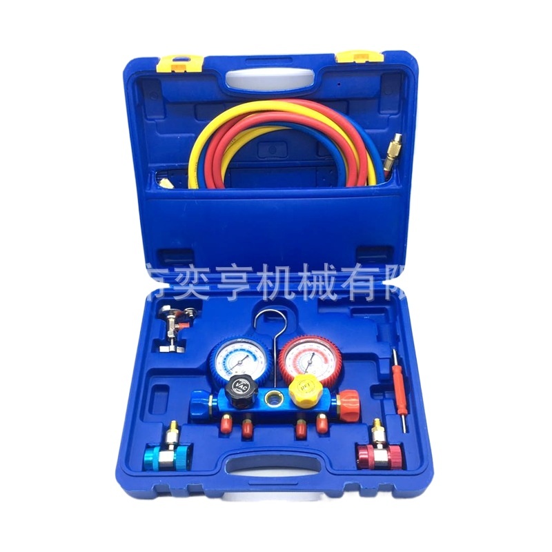 - What You Get: Includes a complete 4-way manifold gauge set, three color-coded hoses (red, yellow, blue), and a sturdy blue carrying case, offering a comprehensive and organized solution for HVAC maintenance and repair.