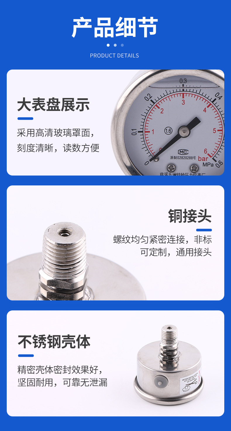 - Quality & Durability: Featuring a robust stainless steel case and copper joint, this pressure gauge ensures long-lasting performance and resistance to corrosion.