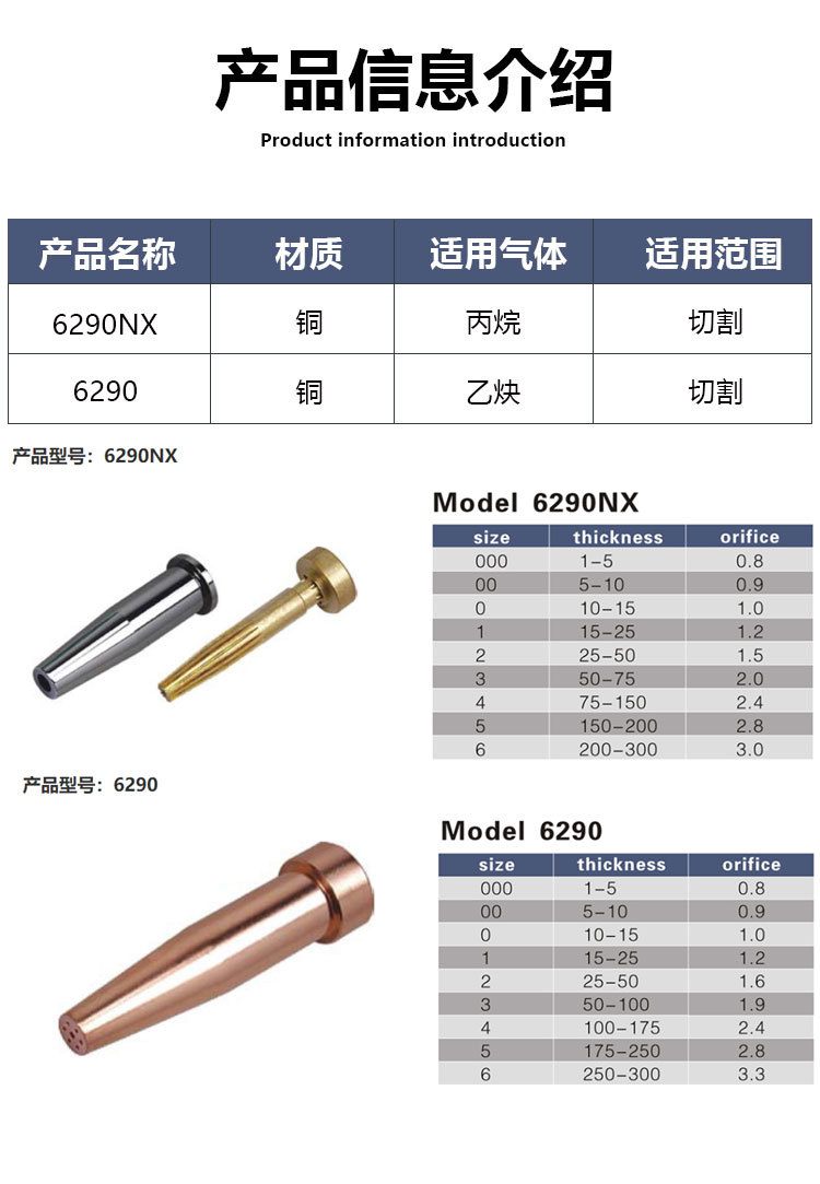 - Wide Compatibility: Model 6290NX is a standard type cutting nozzle, widely compatible with various propane cutting torches and equipment, offering versatile use in industrial settings.