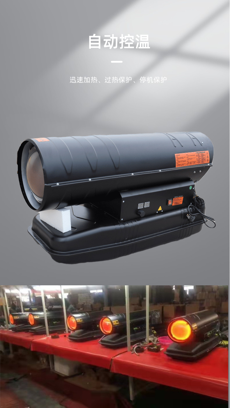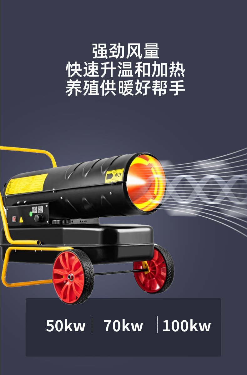 - Wide Compatibility: Efficient 70KW diesel industrial heater suitable for poultry incubation, greenhouse, and large workshop heating applications, ensuring optimal temperature control.
