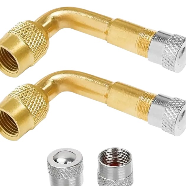 - What You Get: Includes two (2) 90-degree brass valve stem extensions and two (2) nickel-plated valve caps, providing a practical solution for tire maintenance.
