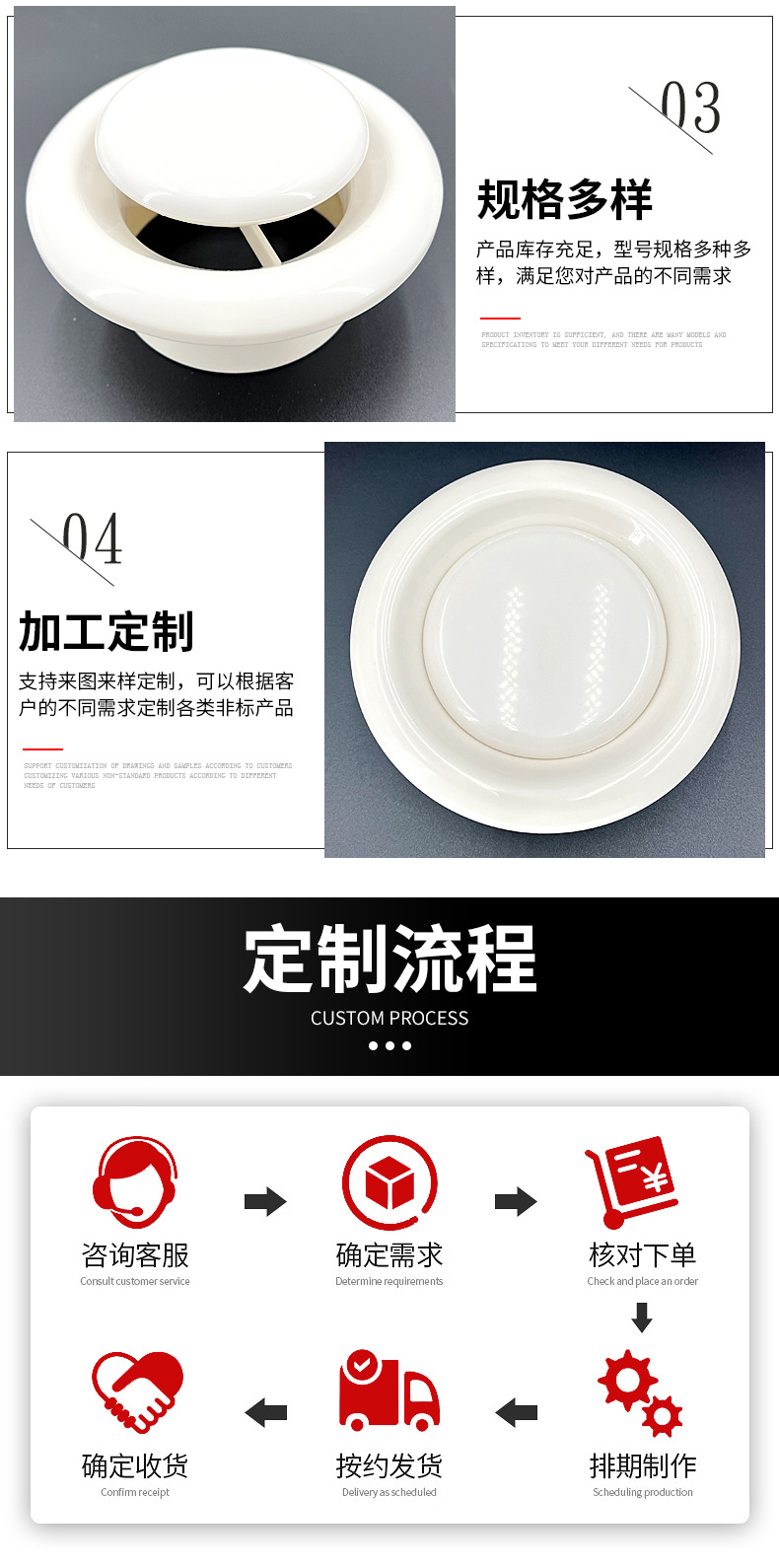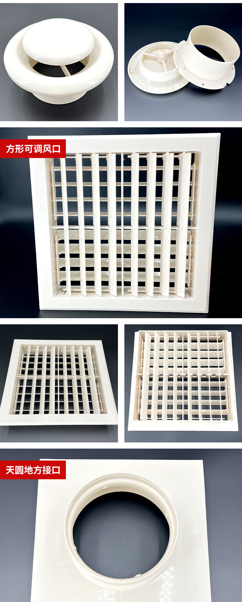 - Key Specs & Performance: Available in multiple sizes including 100mm, 150mm round swirl diffusers, 250x250mm square adjustable grilles, and 200x200mm, 250x250mm ceiling-to-round diffusers for optimal airflow control.