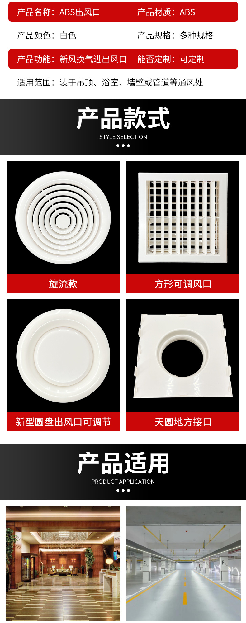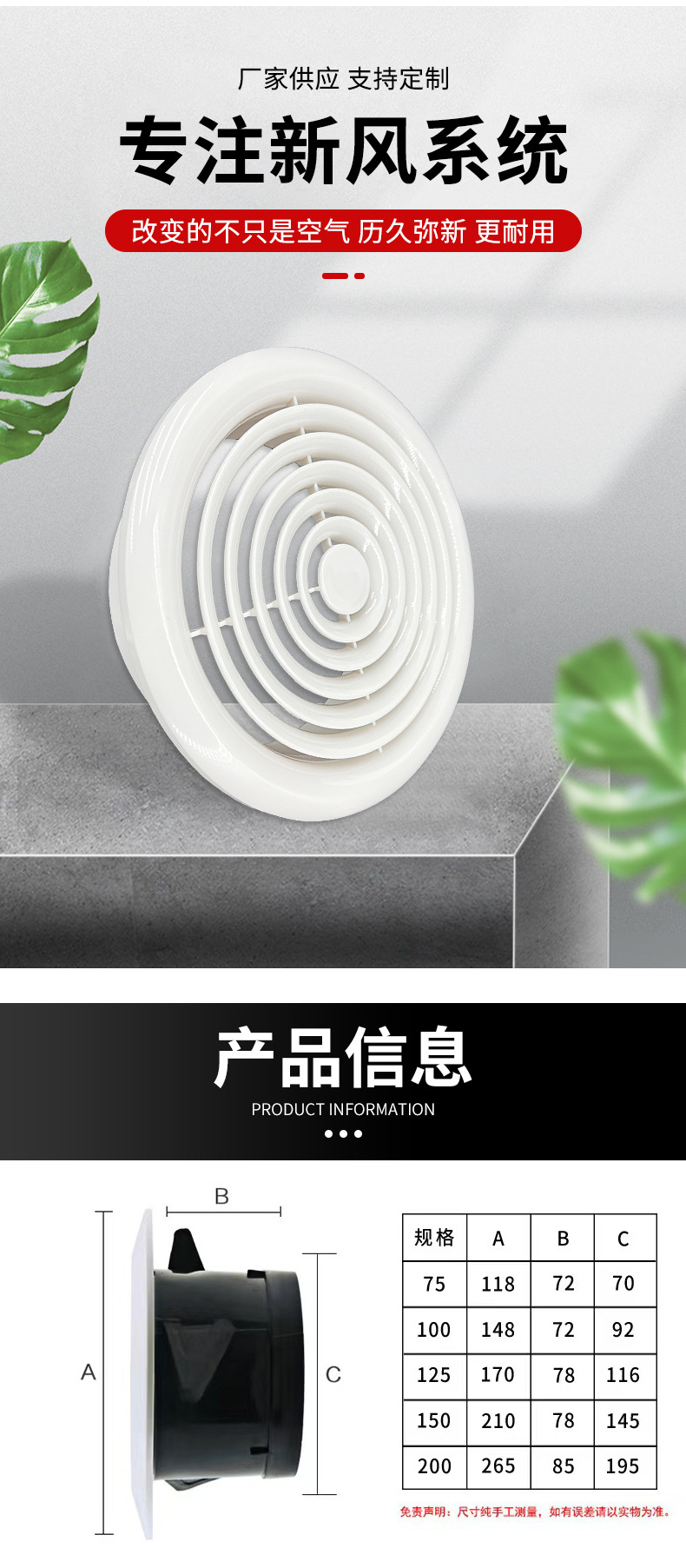 ABS Air Vent Diffuser Round Square Supply Grille for HVAC Systems 100mm 150mm 200mm 250mm