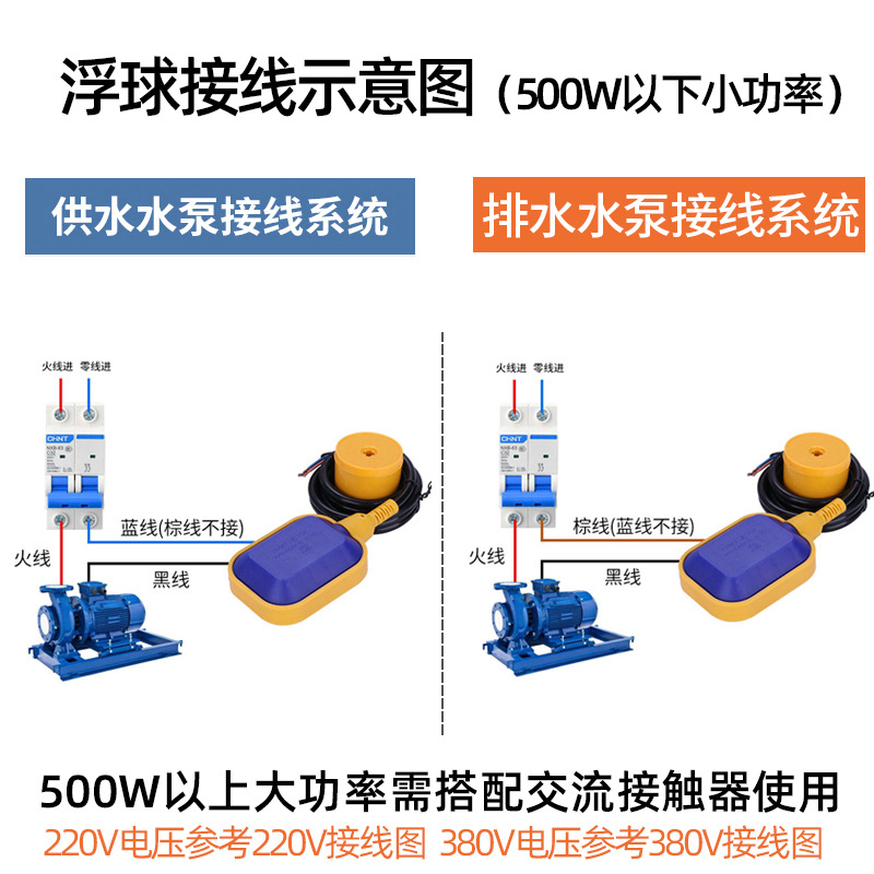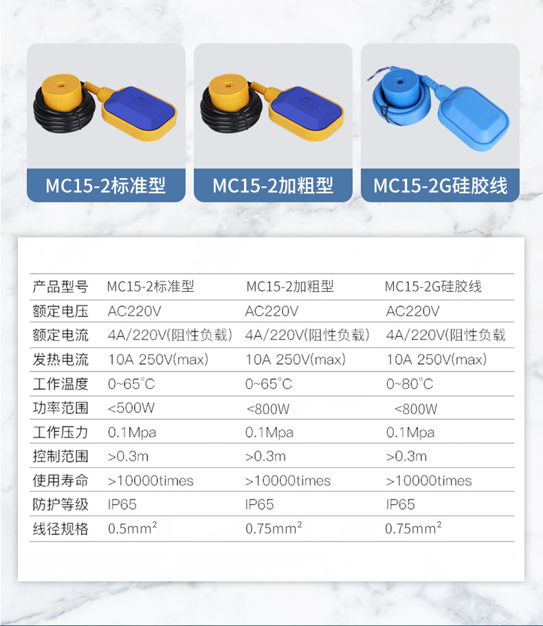 - Wide Compatibility: Versatile float water level switch suitable for various applications including water towers, sumps, and automatic water supply systems. Available with cable lengths from 1 to 10 meters, including reinforced options.