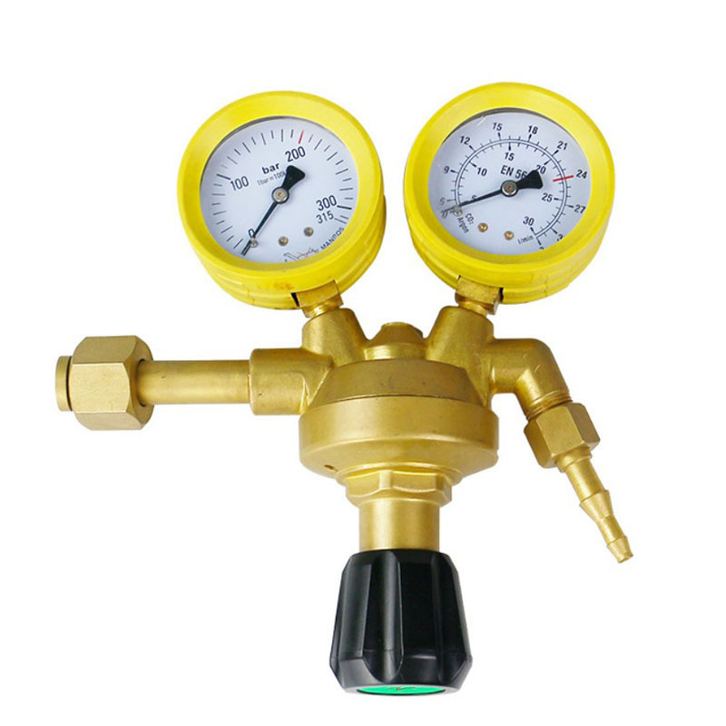 Acetylene Pressure Reducer Regulator Gauge (2.5-25MPa Input, 1.25MPa Output) Double-Stage European Style for C2H2 Gases
