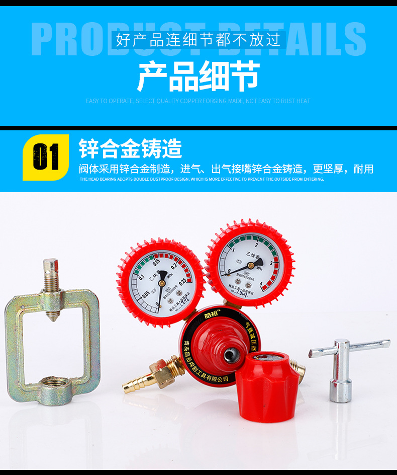 - Easy Installation: Features standard acetylene inlet and M1.6×1.5 outlet connections for straightforward and secure installation on acetylene gas cylinders.