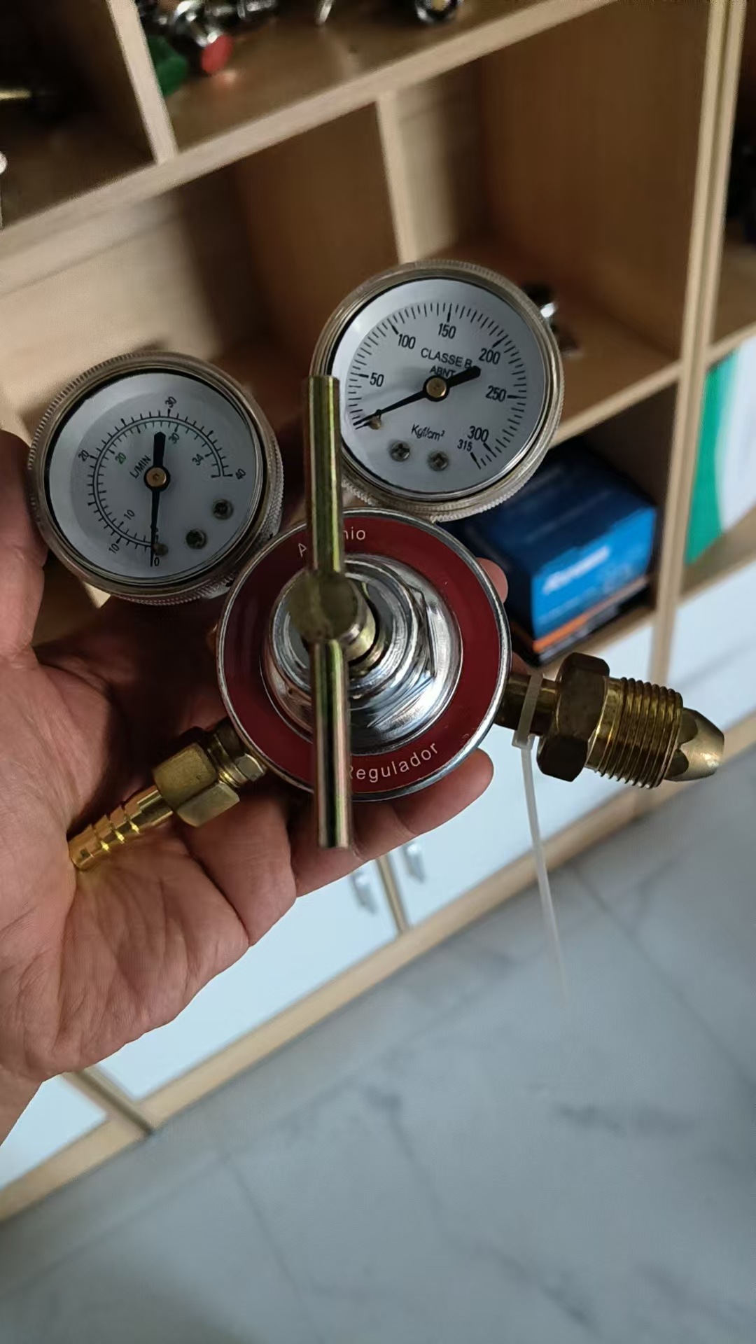 Full Brass Dual Flow Argon & CO2 Gas Regulator CGA580 for TIG Welder with Double Output Flowmeters