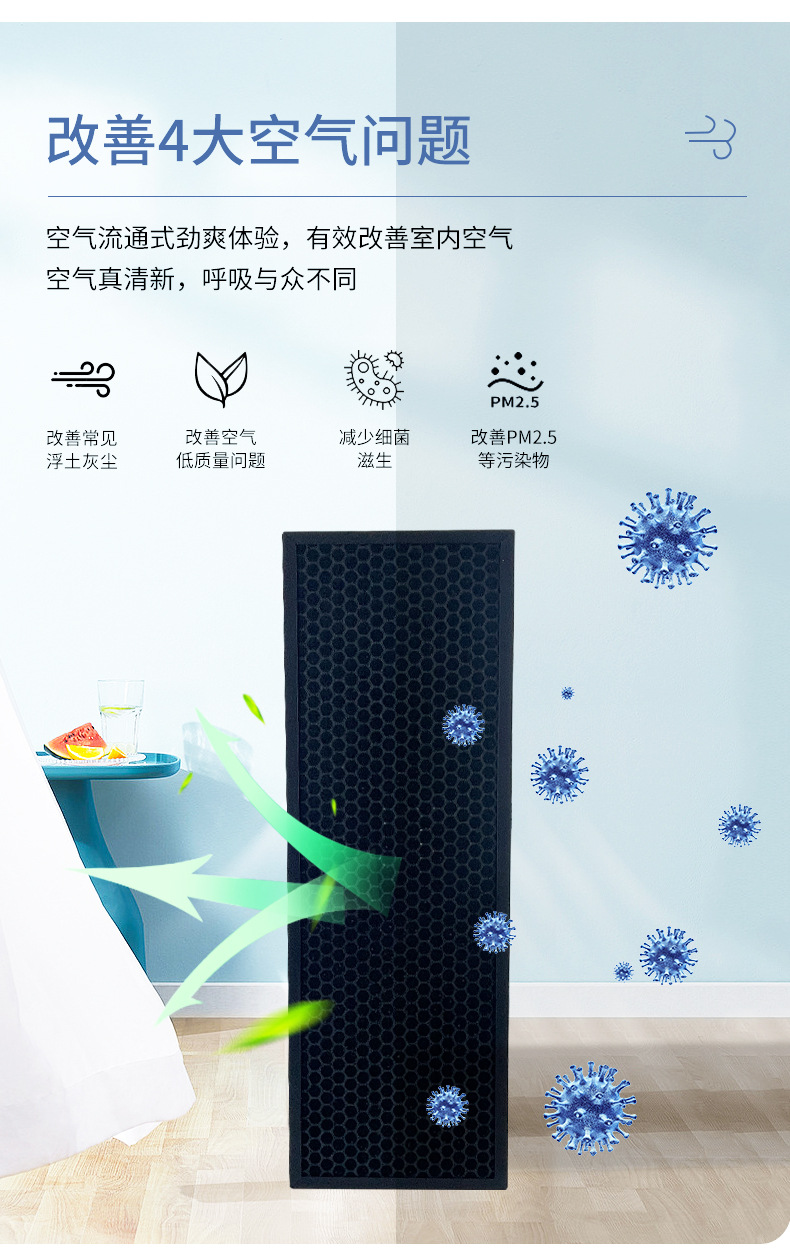 - Enhanced Air Purification: Effectively captures and reduces formaldehyde, PM2.5 particles, odors, and other airborne contaminants, promoting a healthier indoor environment as indicated by product image messaging.