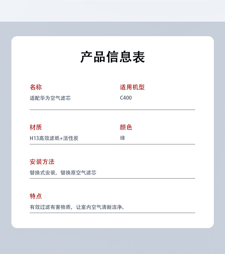 - Easy Installation: Designed for hassle-free replacement, allowing for quick and simple installation into your Huawei air purifier without special tools.