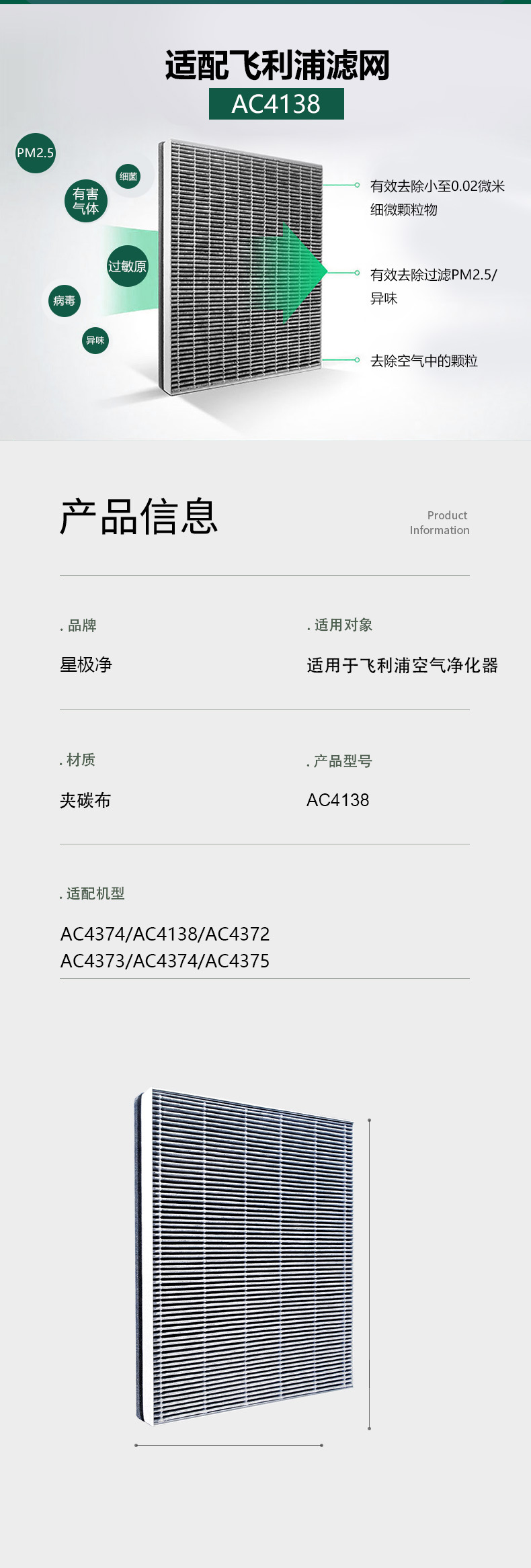 - Wide Compatibility: Specifically designed to fit Philips Air Purifier models AC4374, AC4138, AC4372, AC4373, and AC4375, ensuring a perfect fit and optimal performance.