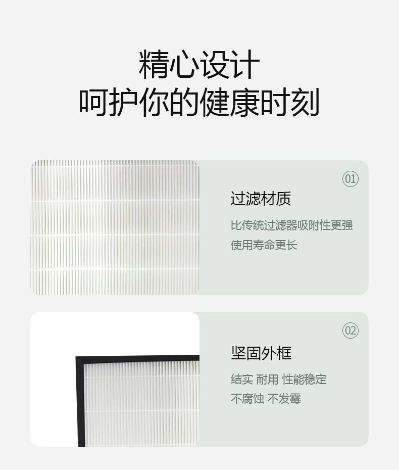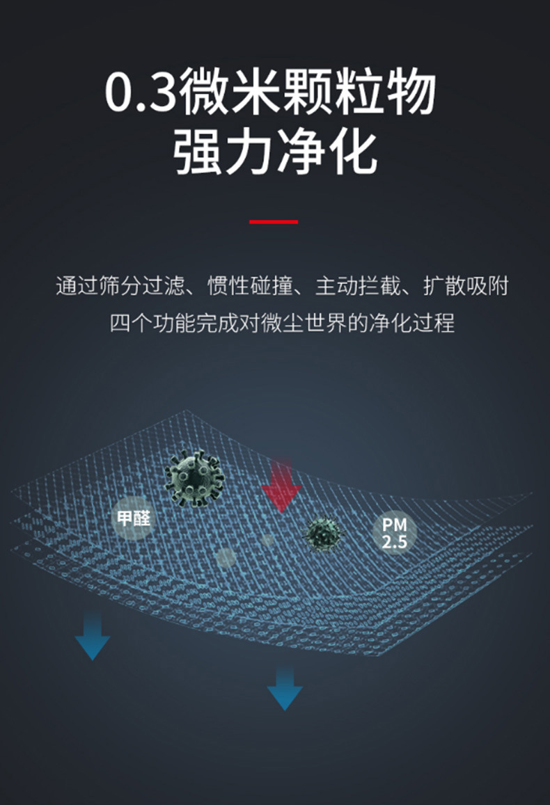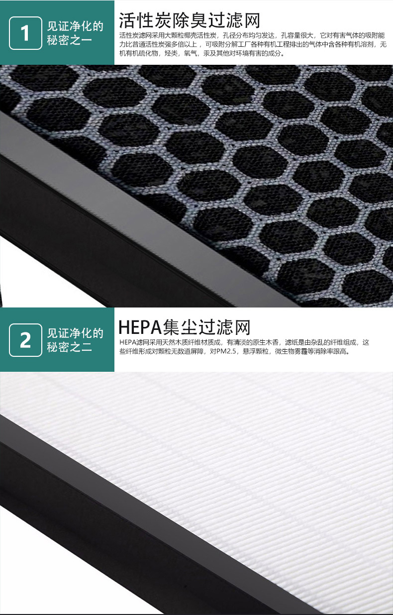 - Premium Filtration: Features a combination of HEPA and activated carbon layers to effectively capture PM2.5 particles, remove odors, eliminate formaldehyde, and reduce bacteria and haze, improving indoor air quality.
