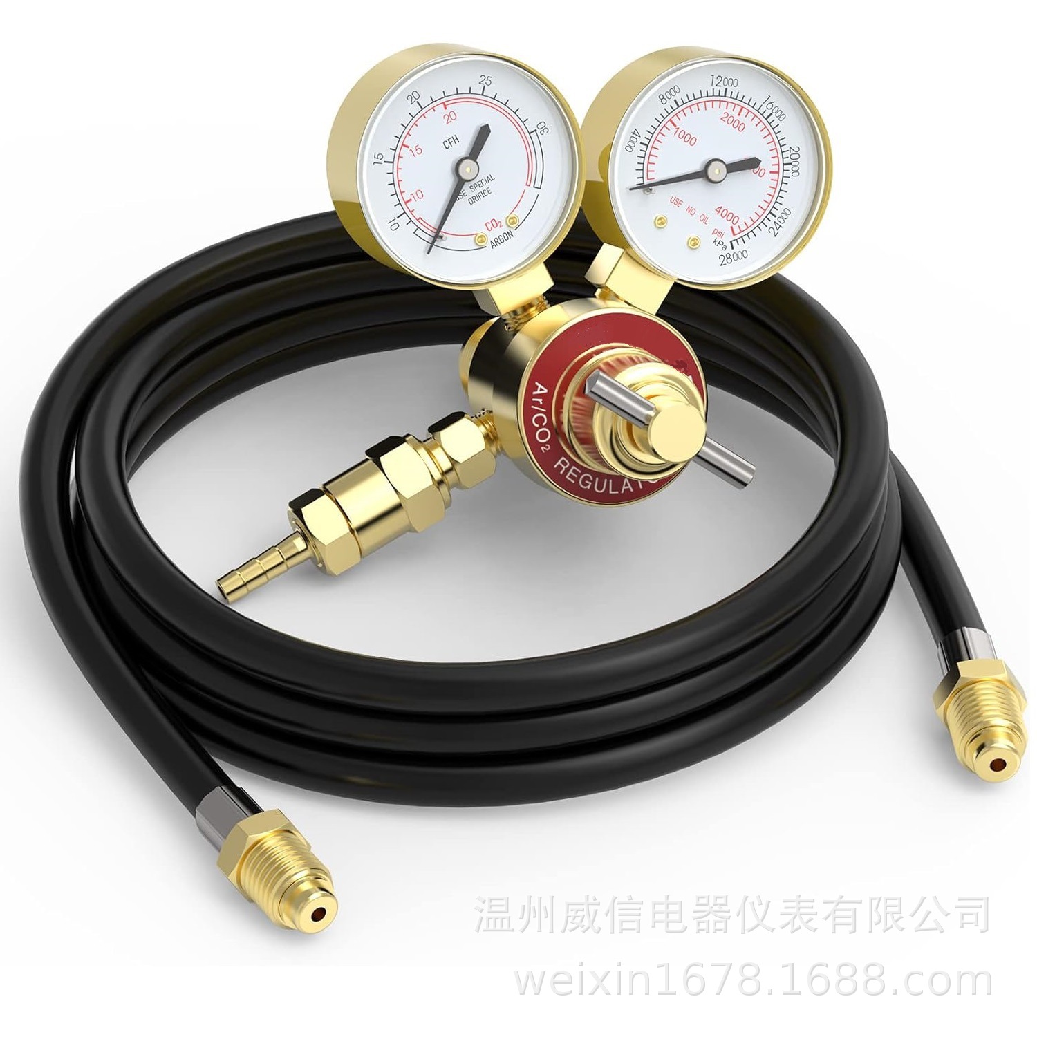 Adjustable Argon/CO2 Pressure Reducer Regulator Gauge Kit with 2m Gas Hose for Welding Applications