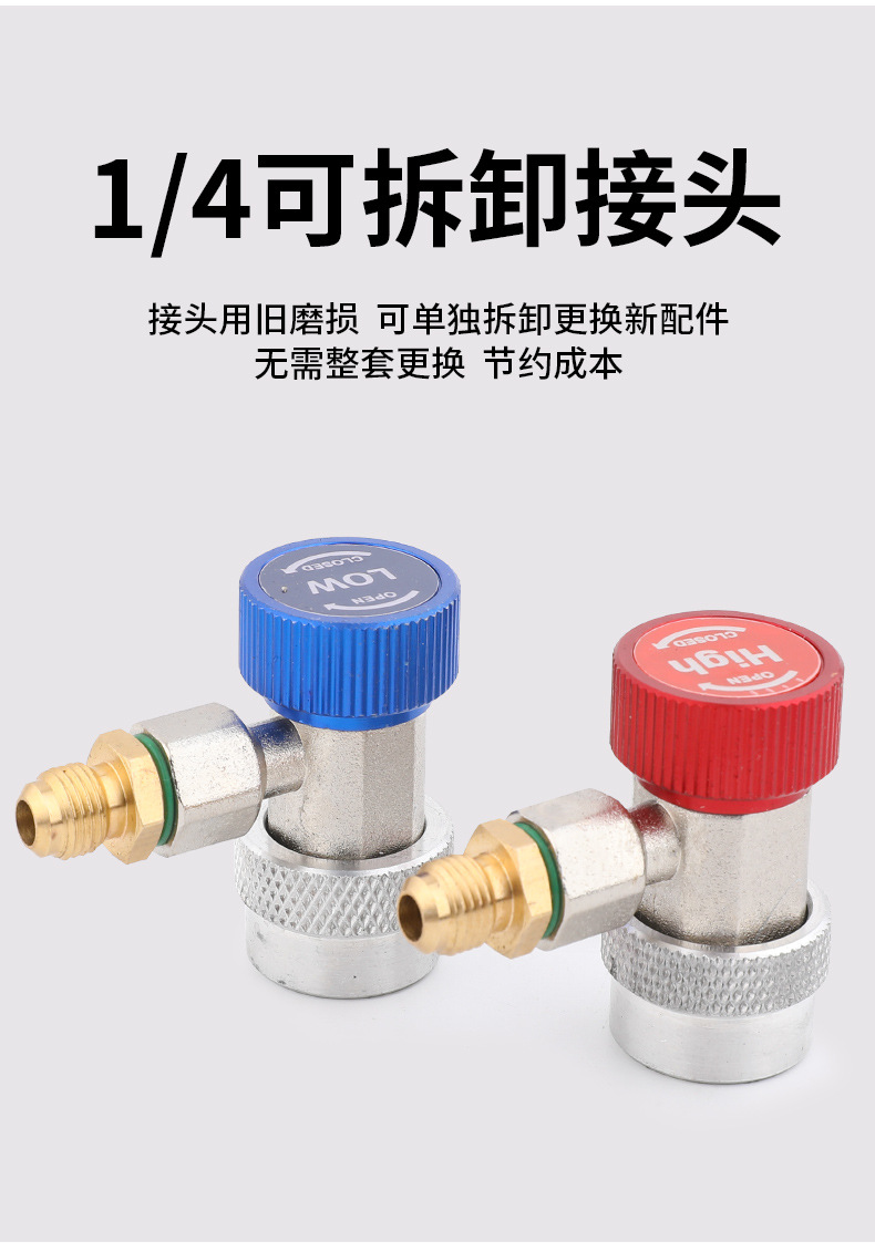 Adjustable R134a/R1234yf High/Low Pressure Quick Coupler HVAC Fluorine Charging Adapter with Brass Fitting for Automotive AC Refrigeration