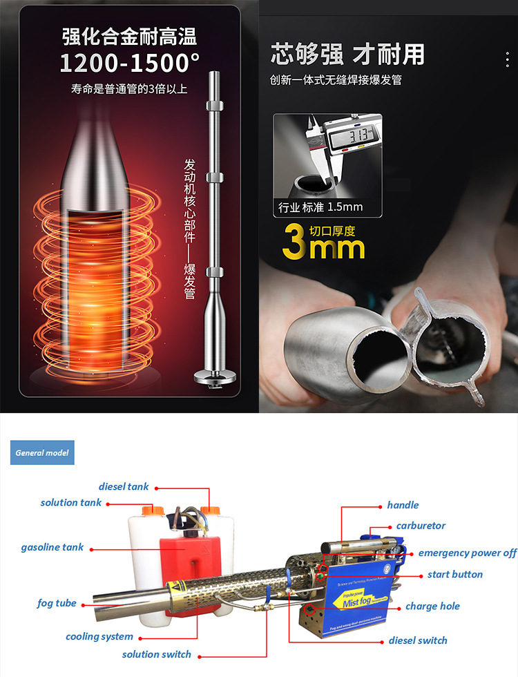 Multi-functional Pulse Fogging Machine (Fog & Water Mist modes) for Agricultural Spraying and Disinfection, Powerful Mist Output, for Outdoor Disinfection Equipment