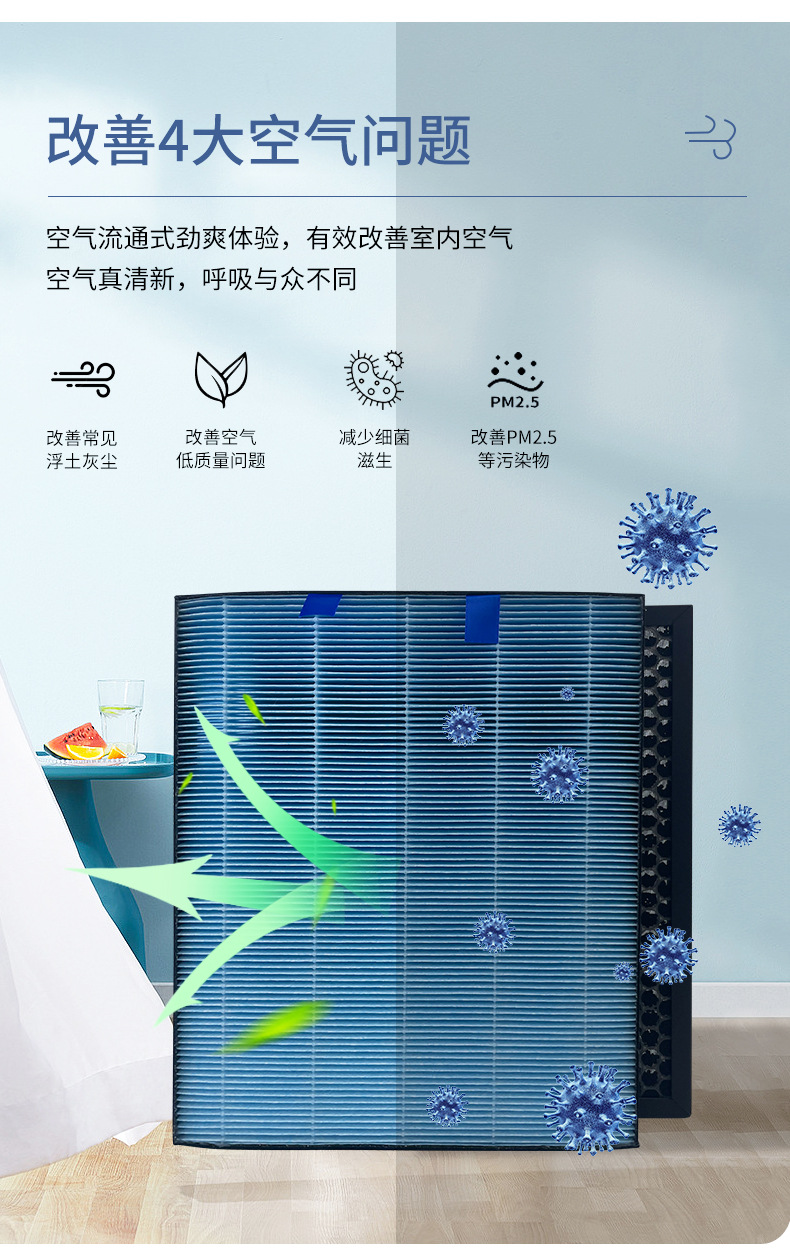 - Quality Filtration: Features a dual-layer media with a highly efficient HEPA filter for dust and haze removal, combined with an activated carbon layer to effectively absorb formaldehyde and other harmful gases.