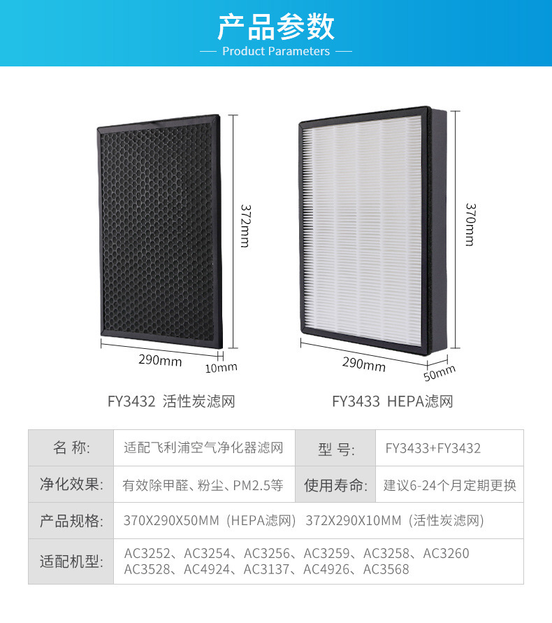 - Wide Compatibility: Compatible with Philips Air Purifier models AC3252, AC3254, AC3256, AC3259, AC3258, AC3260, AC3528, AC4924, AC3137, AC4926, and AC3568. Replaces Philips filter part numbers FY3433 and FY3432.
