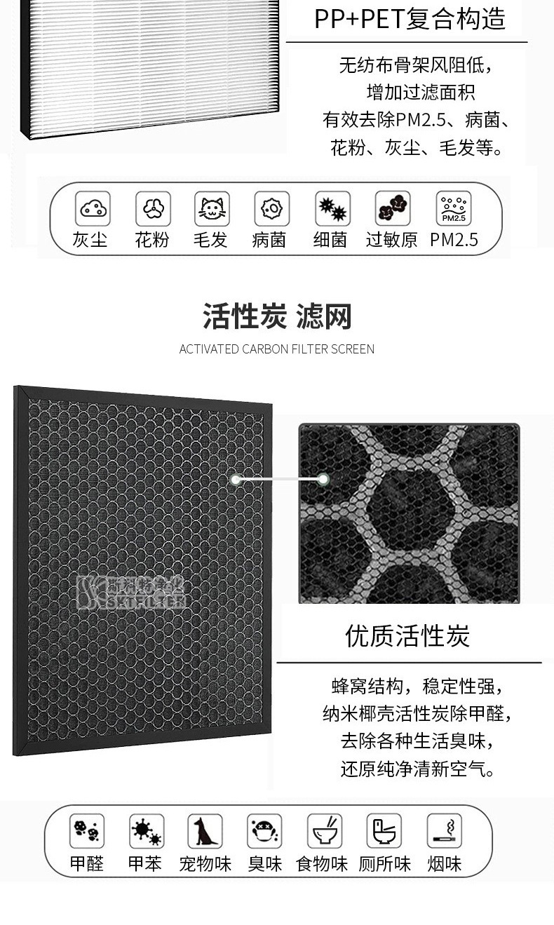 Antibacterial Composite Activated Carbon Filter Replacement for Xiaomi Air Purifier (2C/2H/3C/4Pro)