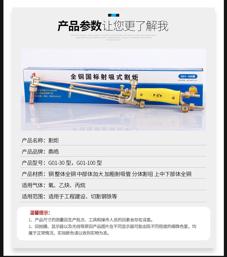 - What You Get: One high-quality national standard all-copper suction-type cutting torch (specific model based on selection), providing a reliable and essential tool for your metal fabrication needs.