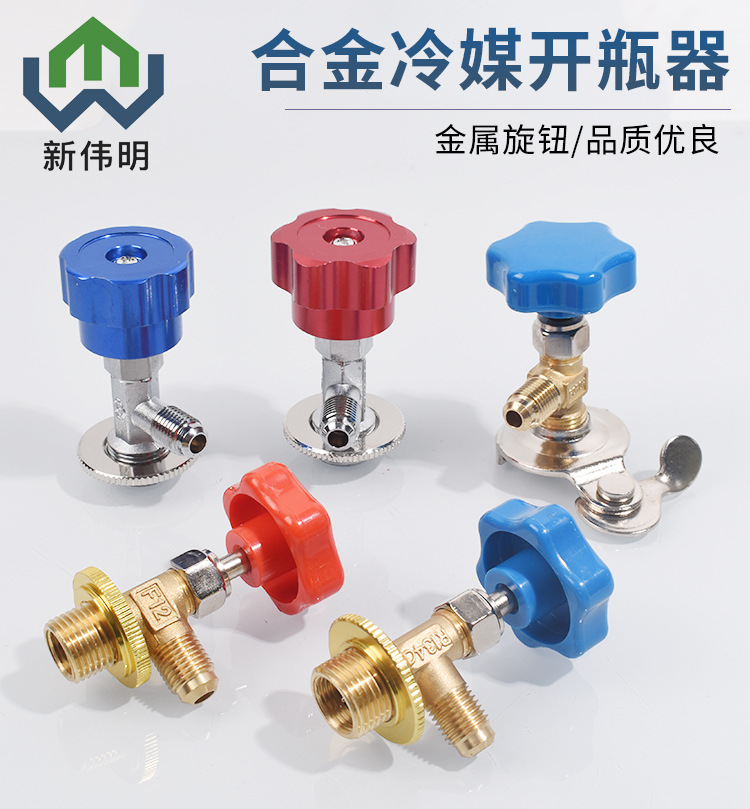 Alloy Refrigerant Bottle Opener Kit with Metal Knob for R22 R134A R600a F12 Refrigerant Bottles, One-Way Valve Design for AC HVAC Systems