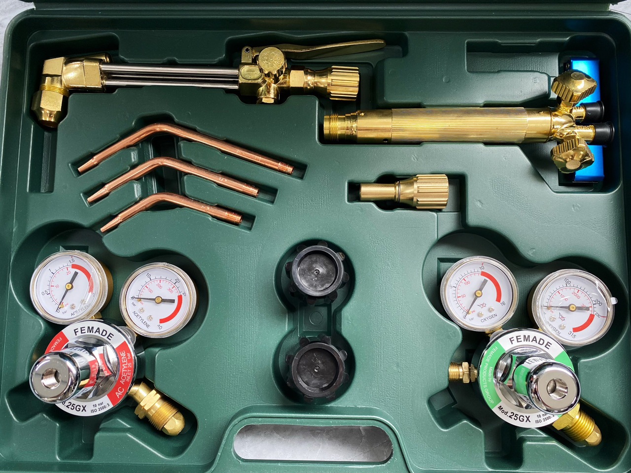 - Comprehensive American Style Kit: This versatile oxy-acetylene welding and cutting set includes high-quality torch handles, cutting attachments, welding nozzles, and essential accessories, designed to meet American standards for various oxy-fuel applications.