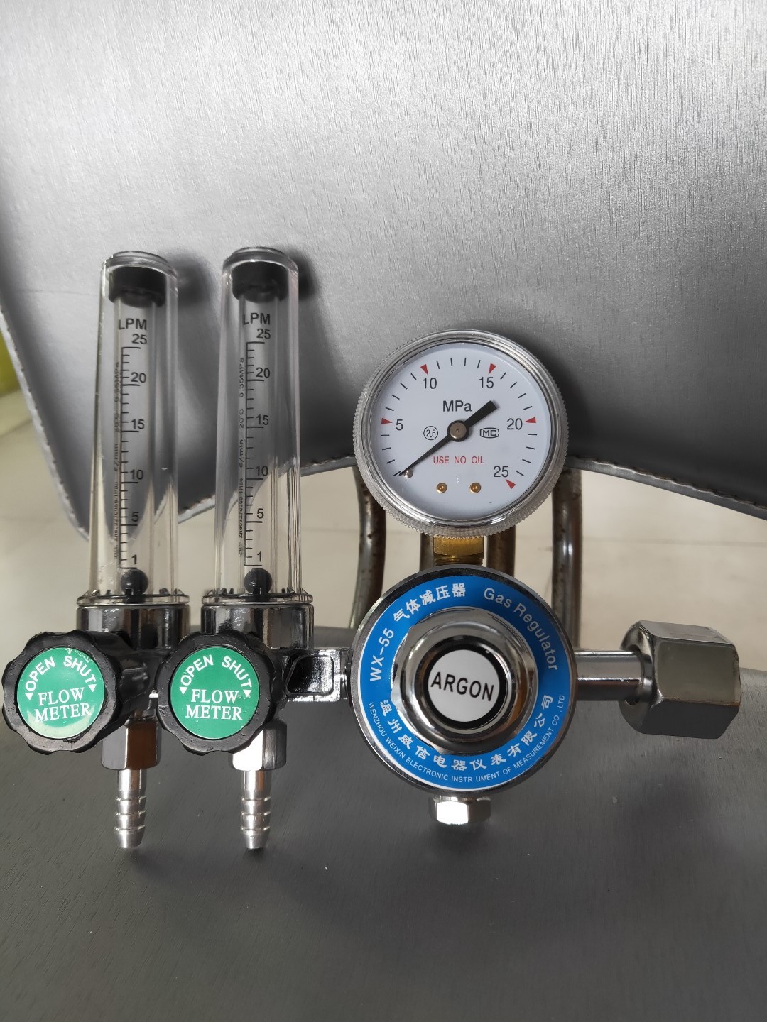 Full Brass Dual Flow Argon & CO2 Gas Regulator CGA580 for TIG Welder with Double Output Flowmeters