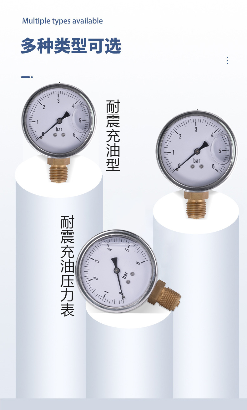 - Quality & Durability: Constructed with a stainless steel body and brass connection, this oil-filled gauge provides seismic resistance, wear resistance, oil resistance, and high-temperature corrosion resistance, ensuring long-term reliability.