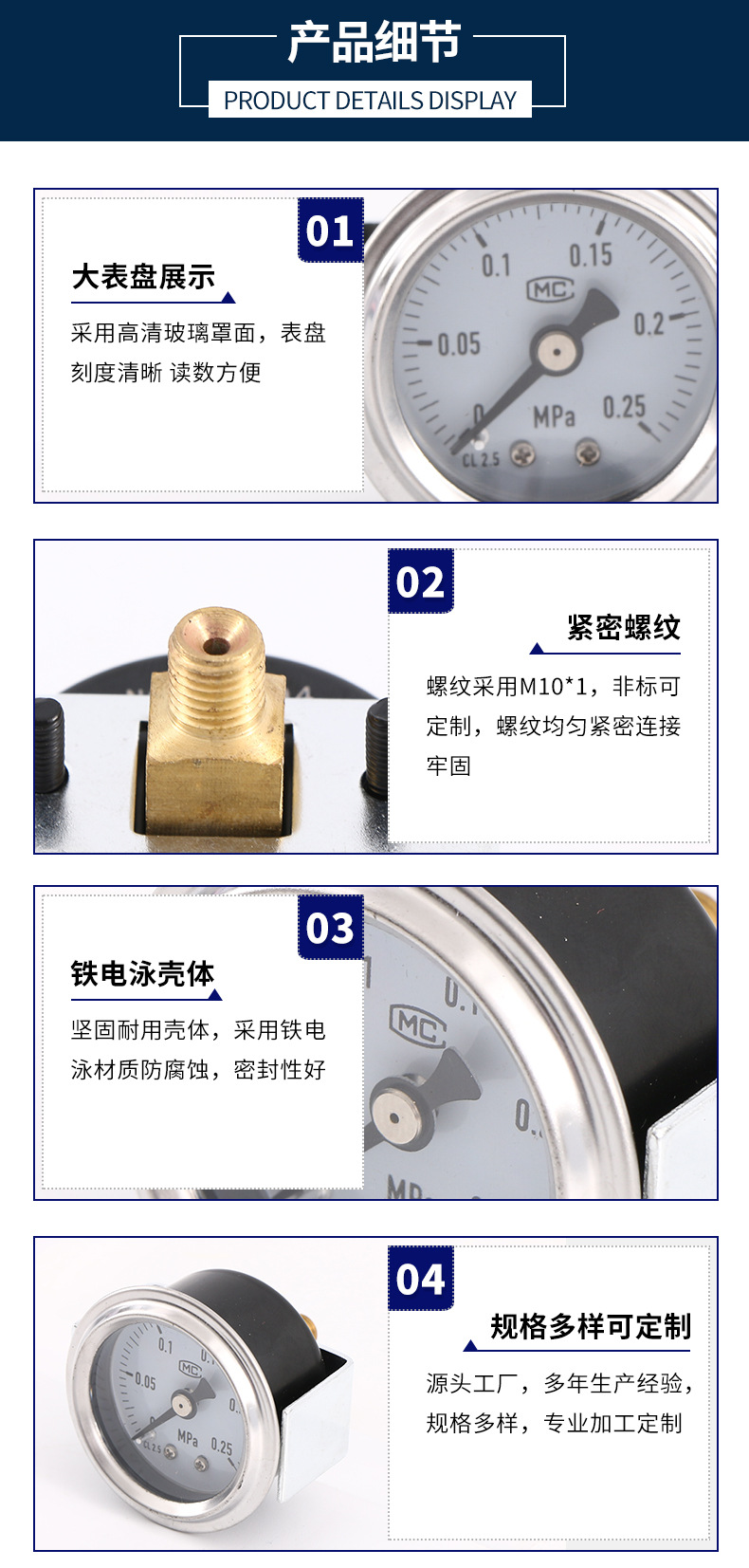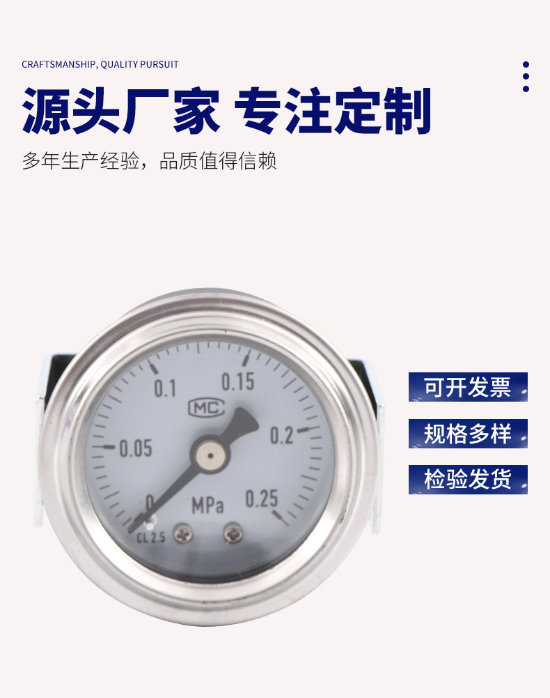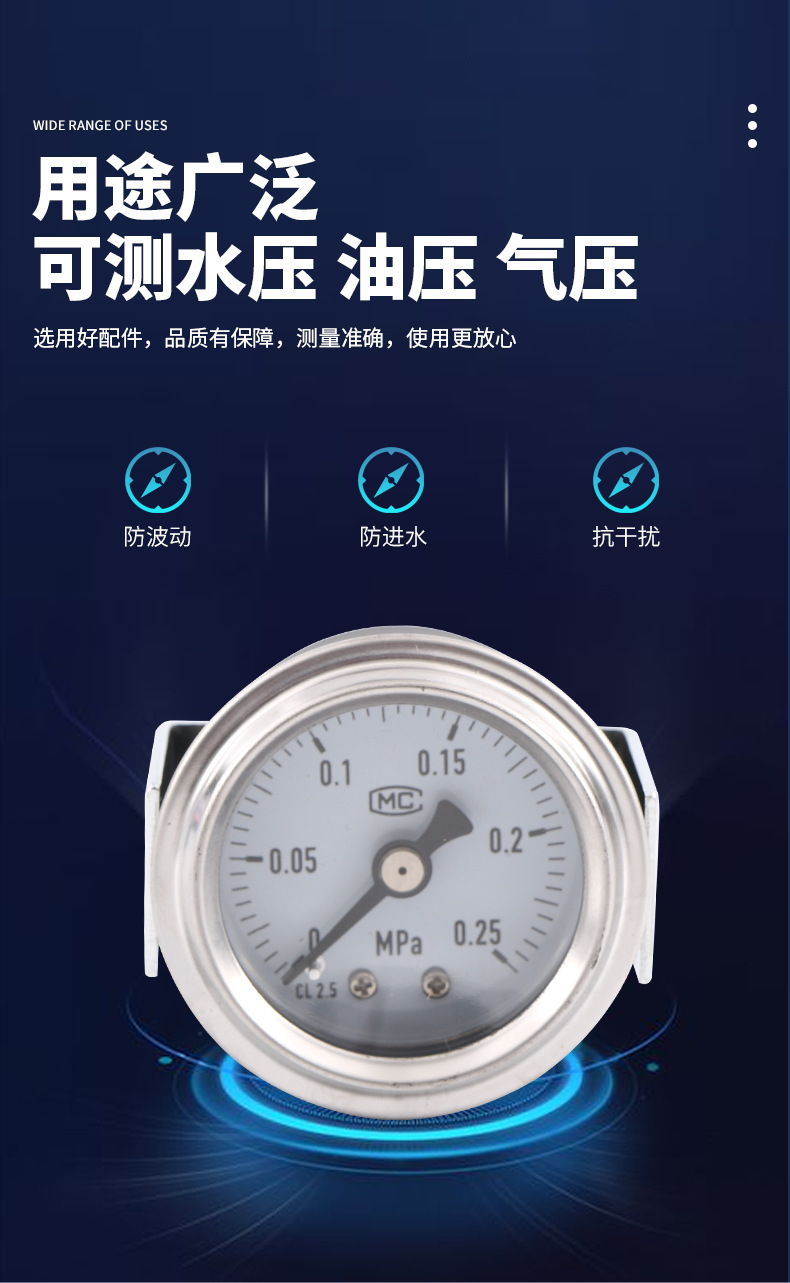 - Key Specs & Performance: Features a 40mm nominal diameter dial with a measuring range of 0-0.25 MPa and Class 2.5 accuracy for precise readings.