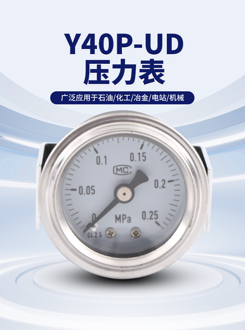 Analog Pressure Gauge Y40P-UD (0-0.25 MPa, 40mm Dial, Class 2.5) for Water, Air, Hydraulic, Oil Systems