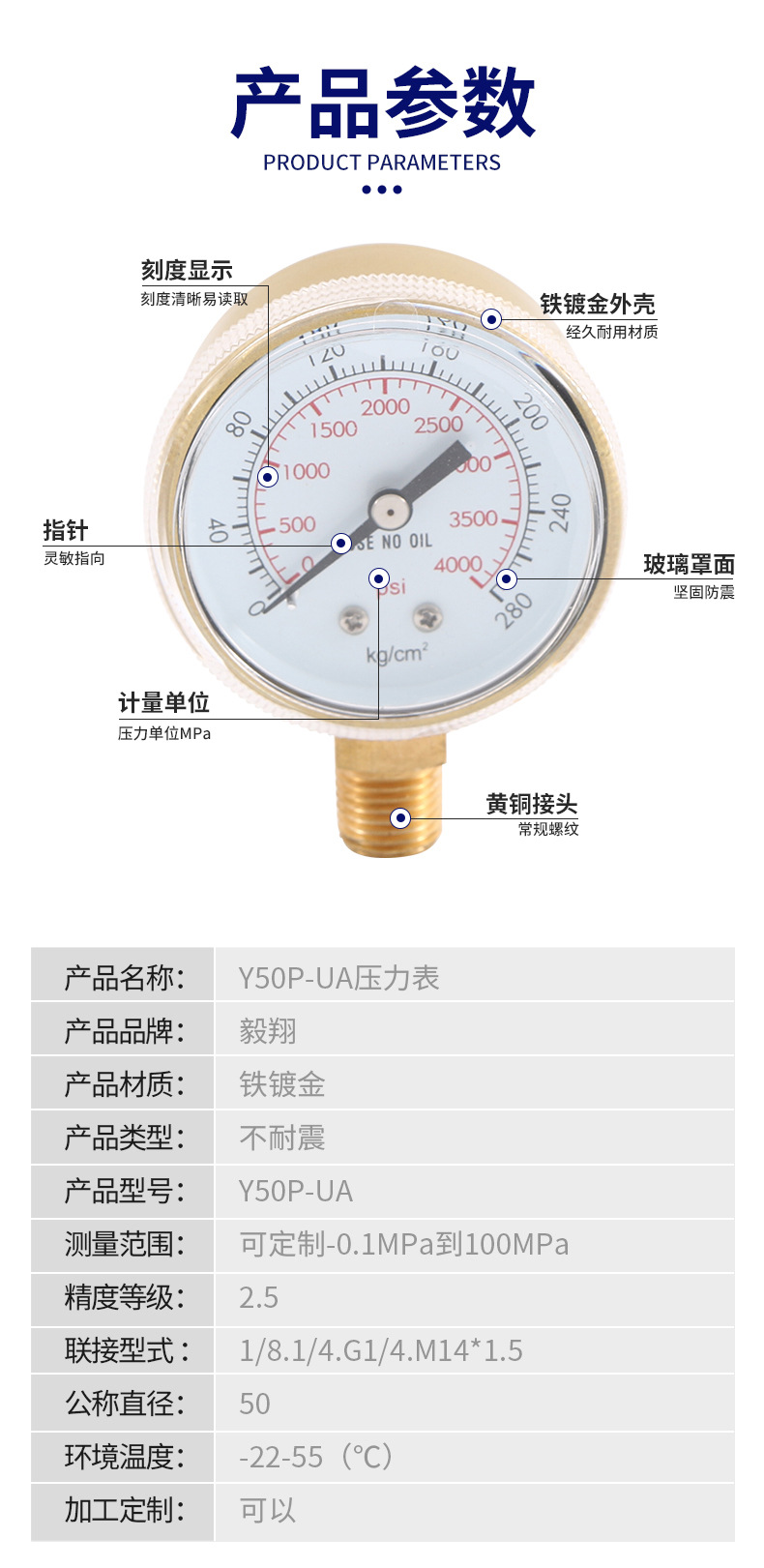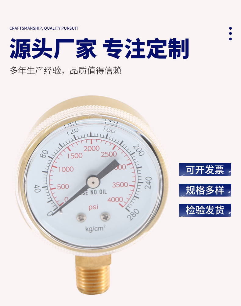 - Core Specs & Performance: Y50P-UA model with dual pressure scales (0-4000 psi and 0-280 kg/cm²) for versatile measurement, offering 1.6 accuracy for reliable readings.